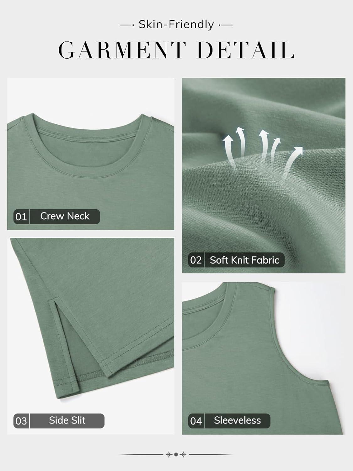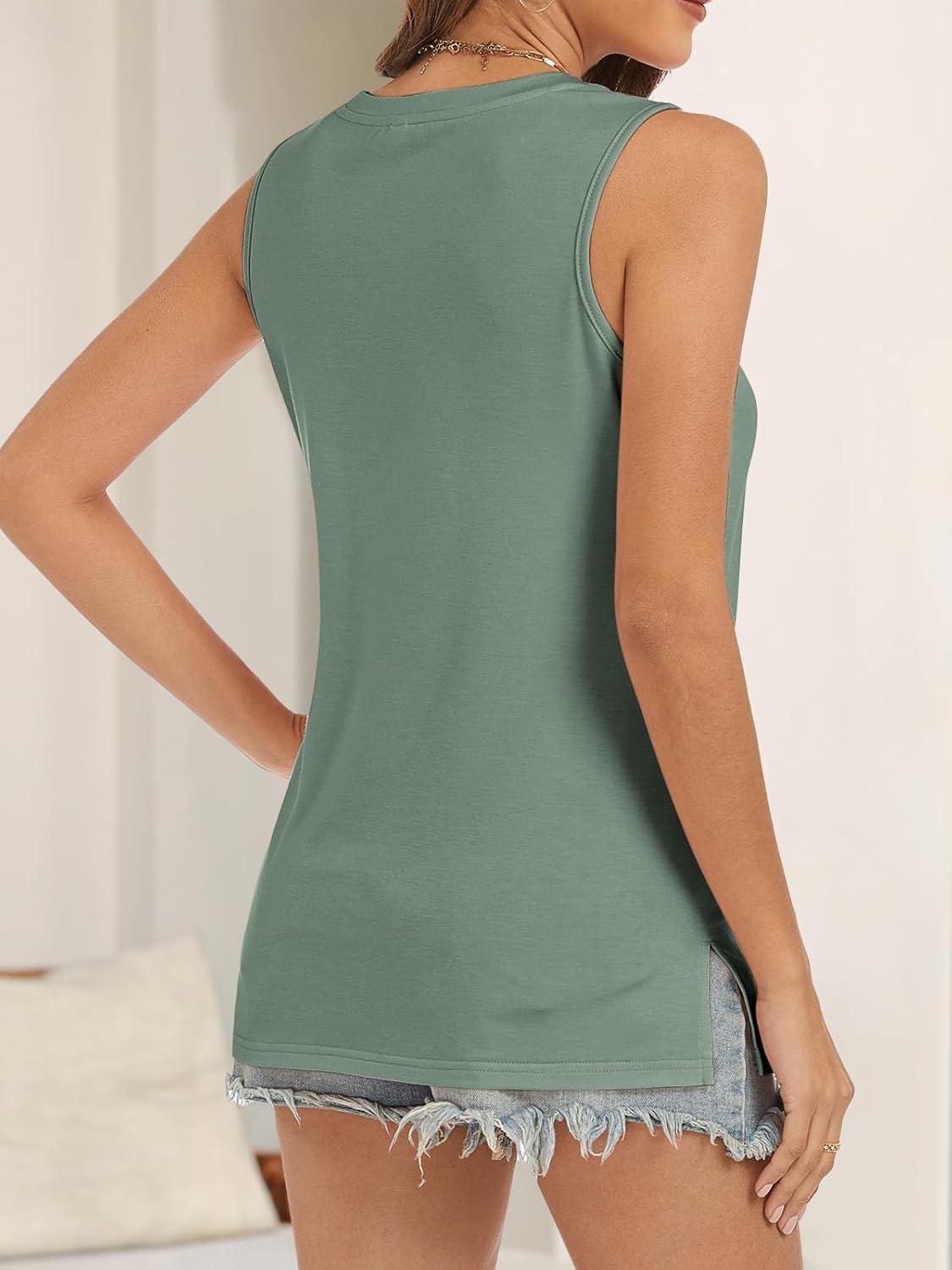 ATHMILE Tank Top for Women Summer Sleeveless Tops Casual Crewneck Side Split Tank Top Beach Vacation Outfits 2025(Green)