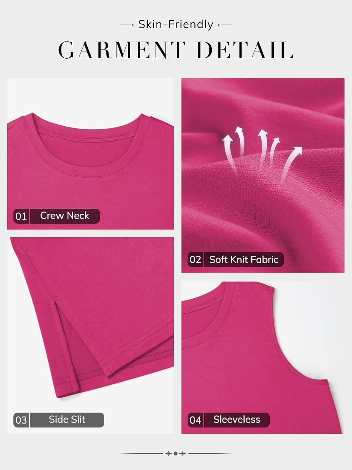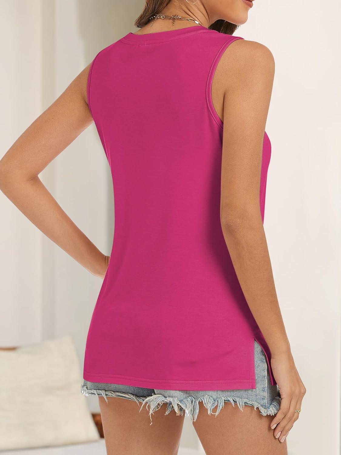ATHMILE Tank Top for Women Summer Sleeveless Tops Casual Crewneck Side Split Tank Top Beach Vacation Outfits 2025(Rose Red)