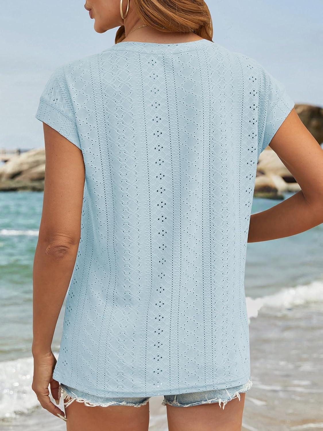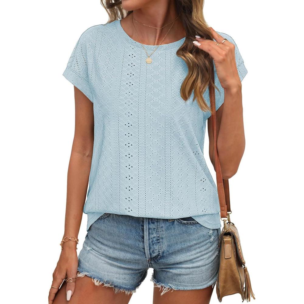 Save up to 40% on ATHMILE Tops for Women Trendy Short Sleeve Shirts Dressy Casual Cap Blouses with Curved Hem Summer Clothing(Blue) styles during our end-of-season sale.