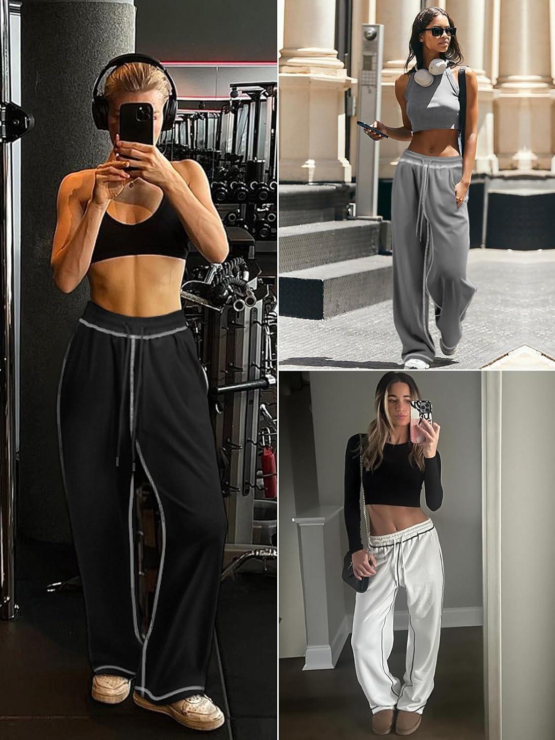 ATHMILE Track Pants Women Sweatpants Wide Leg Straight Drawstring Teen Girl Fall Jogging Soft Lounge Athletic Pajama Joggers(White)