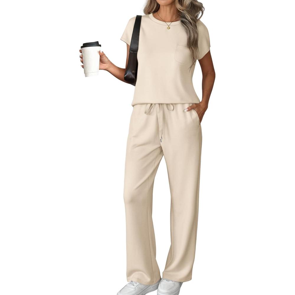 Two Piece Sets for Women Summer Travel Vacation Outfits Cap Sleeve Lounge Matching Sets Wide Leg Pants