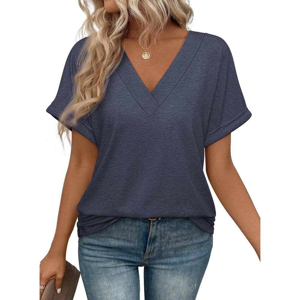 Don’t miss out on our limited-time offer: buy ATHMILE V Neck T Shirts for Women Summer Tops Soft Casual Short Sleeve Cute Basic Trendy Outfits 2025(Navy Blue), get {accessory} 50% off!
