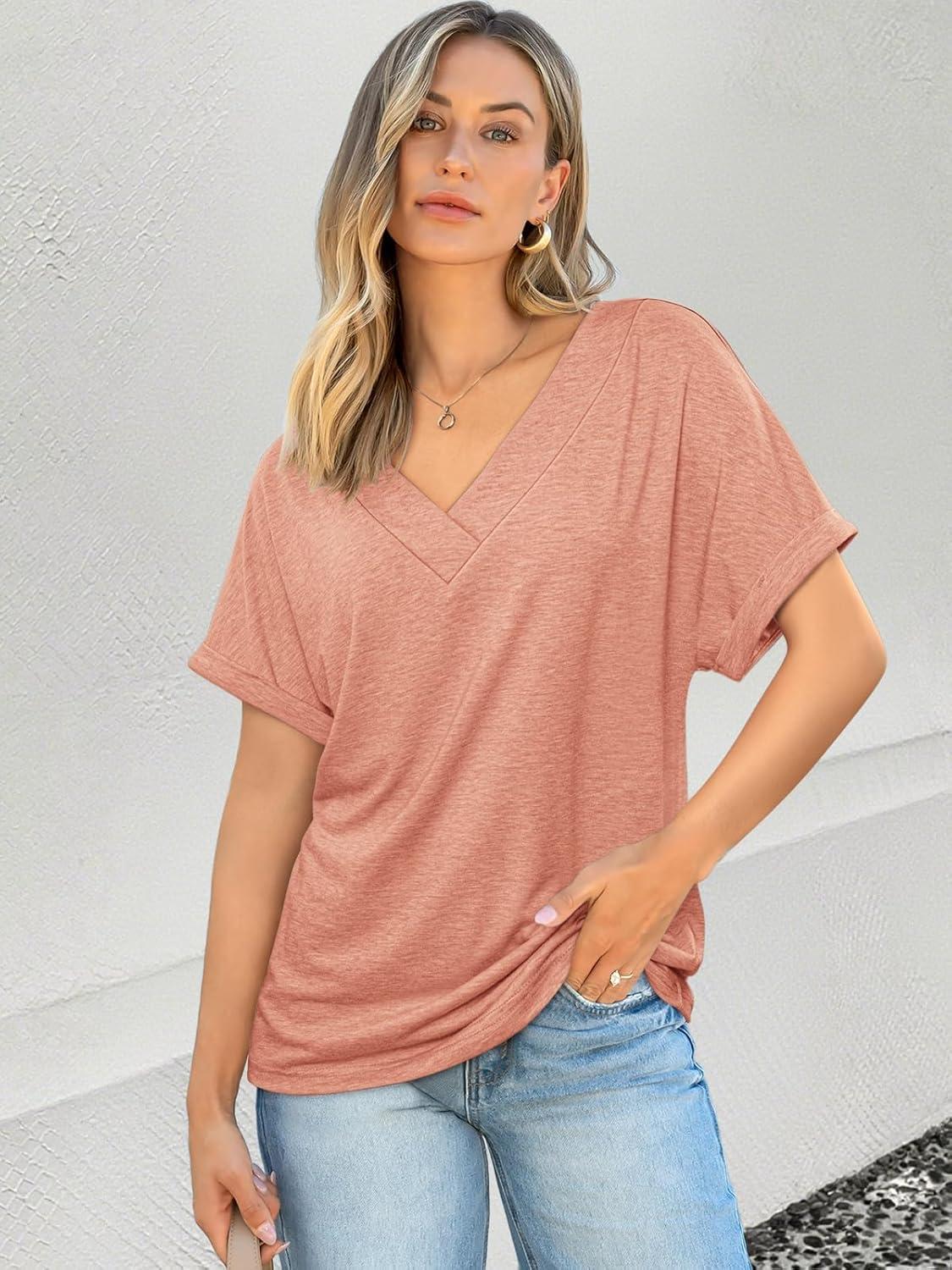Get a free gift with your purchase of ATHMILE V Neck T Shirts for Women Summer Tops Soft Casual Short Sleeve Cute Basic Trendy Outfits 2025(Pink). Limited quantities available!