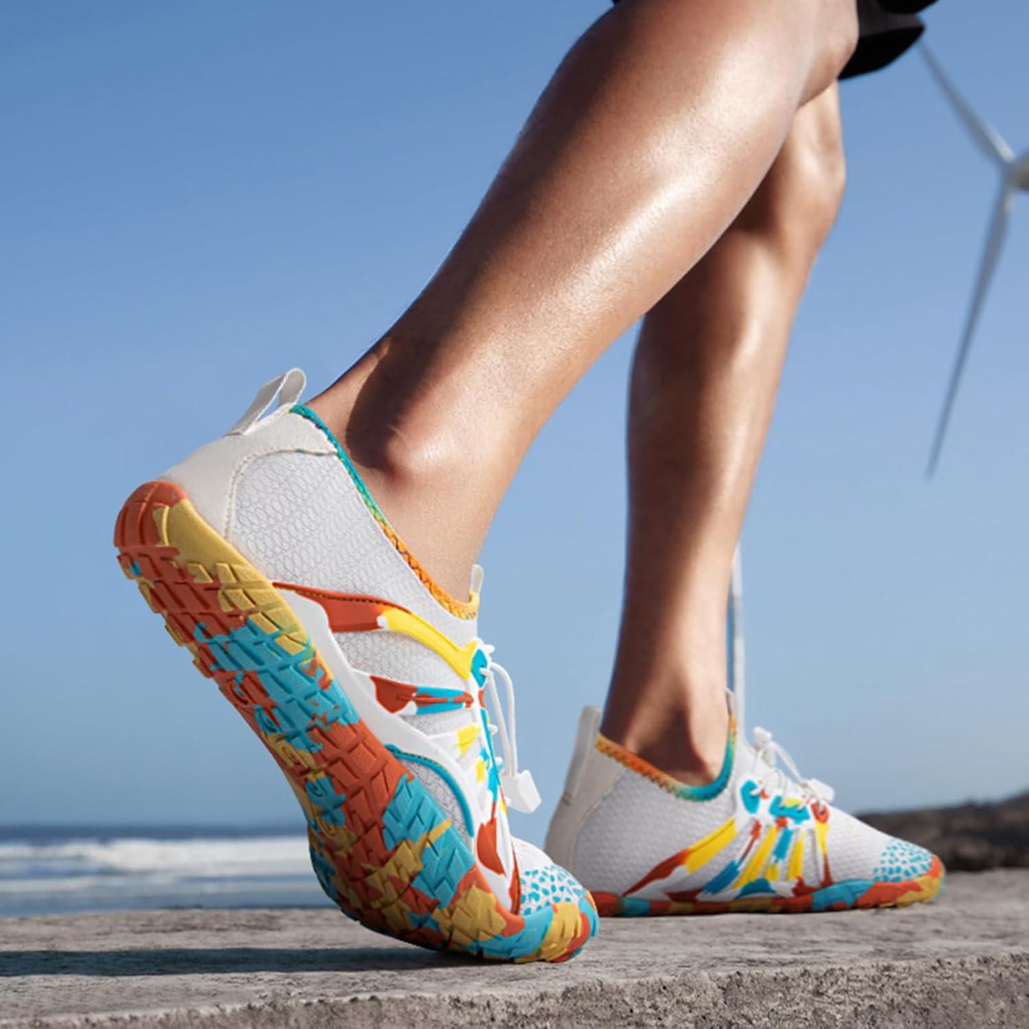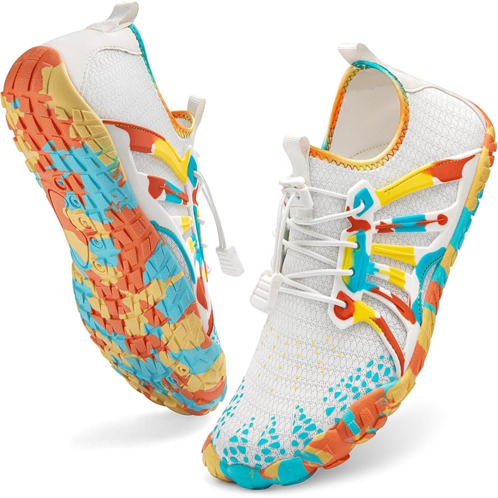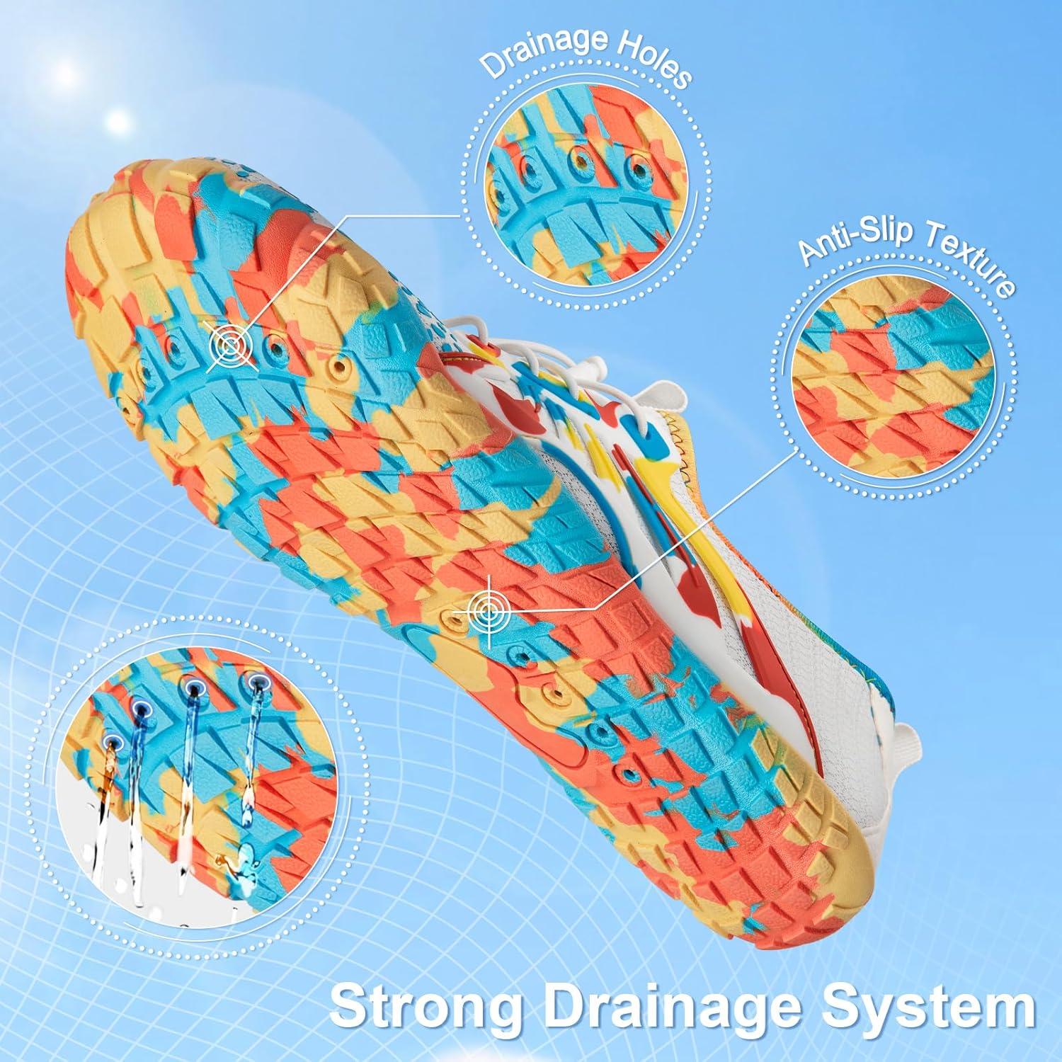 ATHMILE Water Shoes for Women Men Quick Dry Beach Barefoot Aqua Swim Shoes Non-Slip for Wading Rafting Hiking Kayaking(A White Colorful)