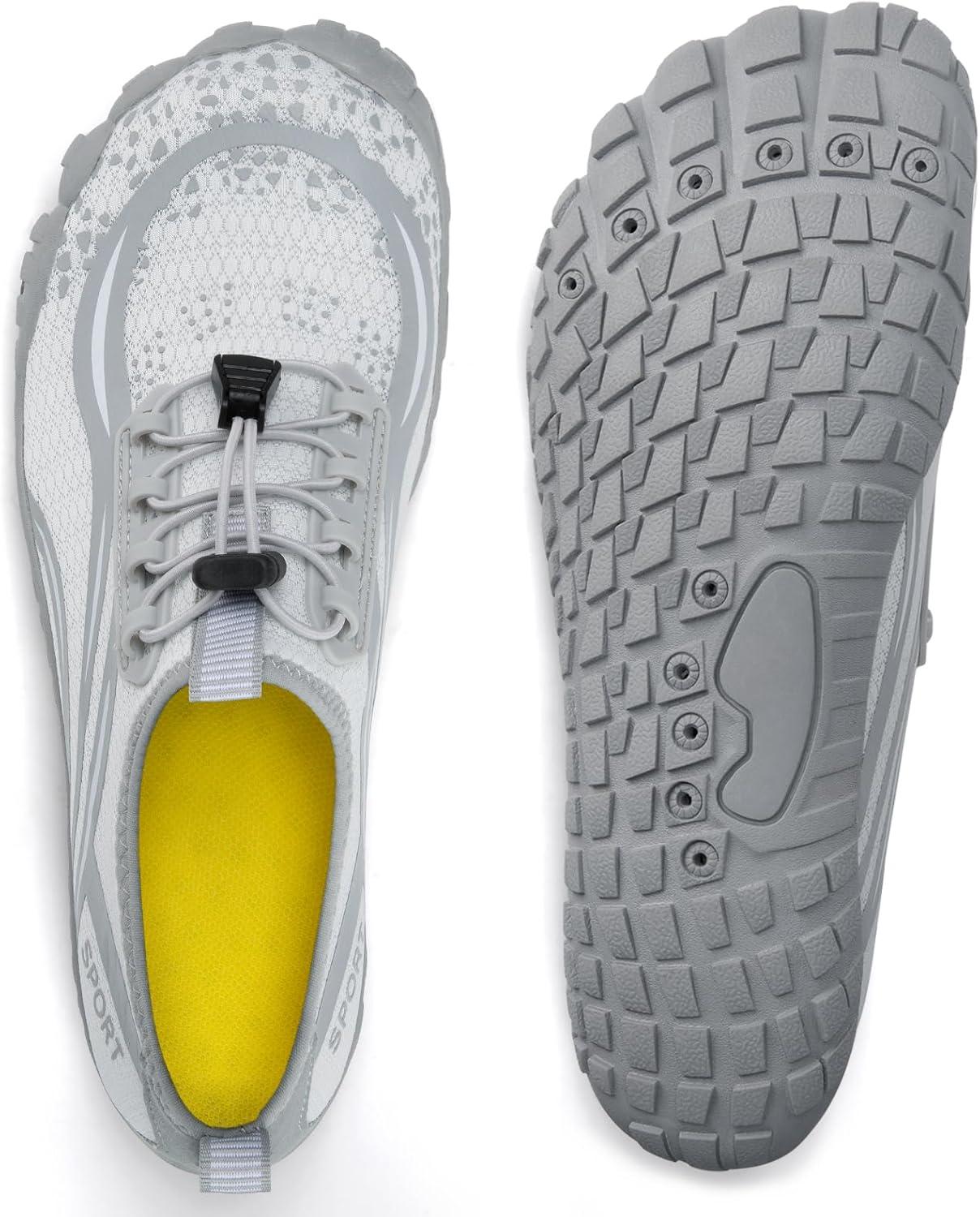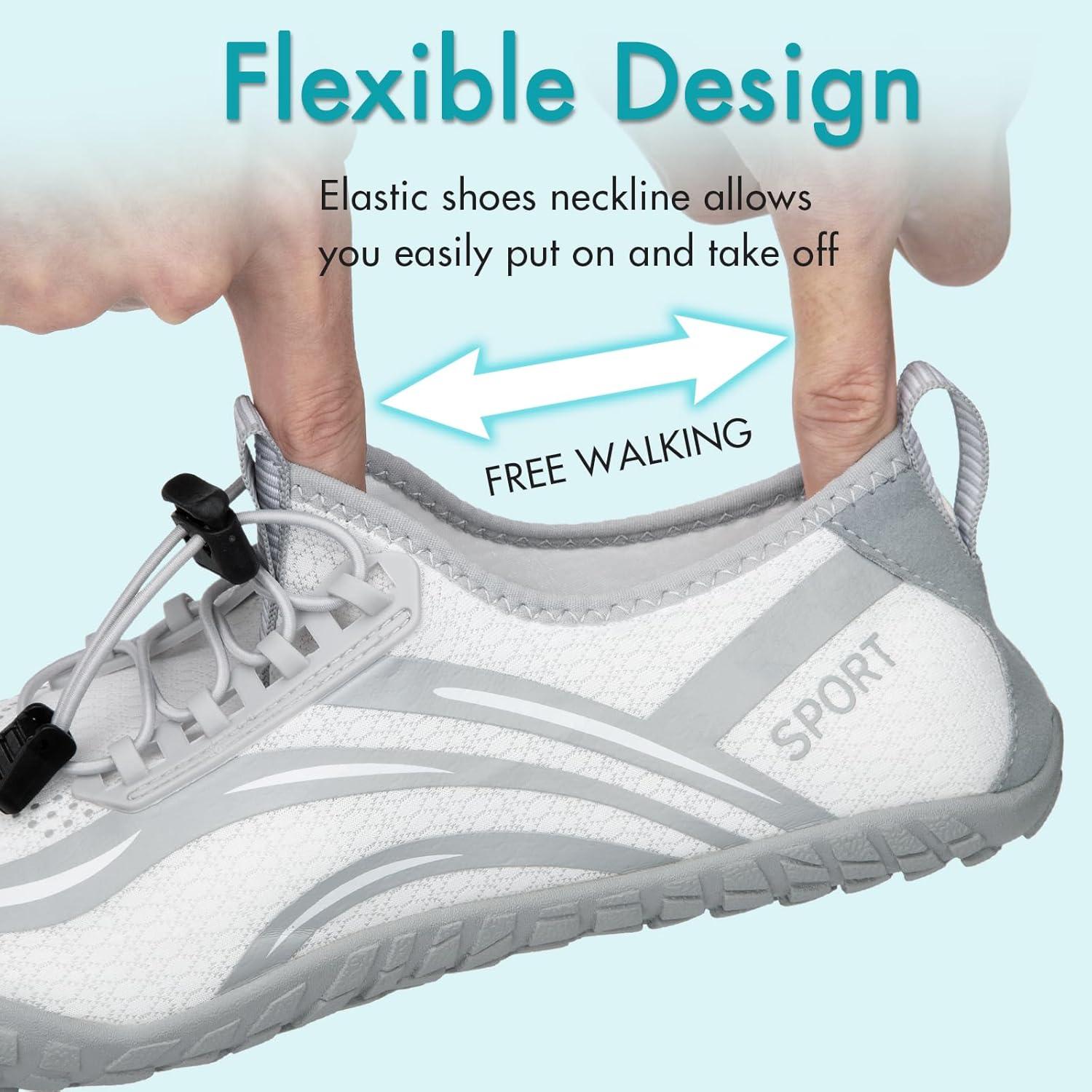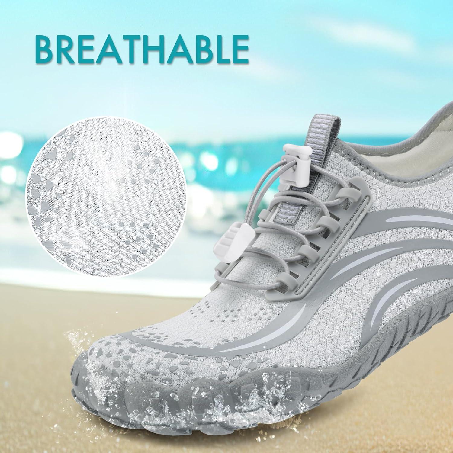 ATHMILE Water Shoes for Women Men Quick Dry Beach Barefoot Aqua Swim Shoes Non-Slip for Wading Rafting Hiking Kayaking(B White)