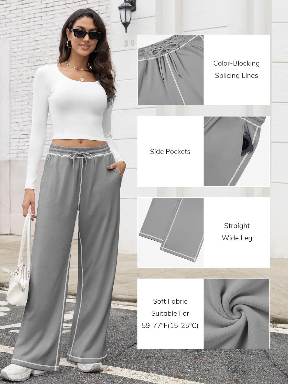 ATHMILE Women Sweatpants Soft Jogging Straight Pajama Sweats Wide Leg Sweatpants Women Lounge Pants Joggers 2025(Grey)