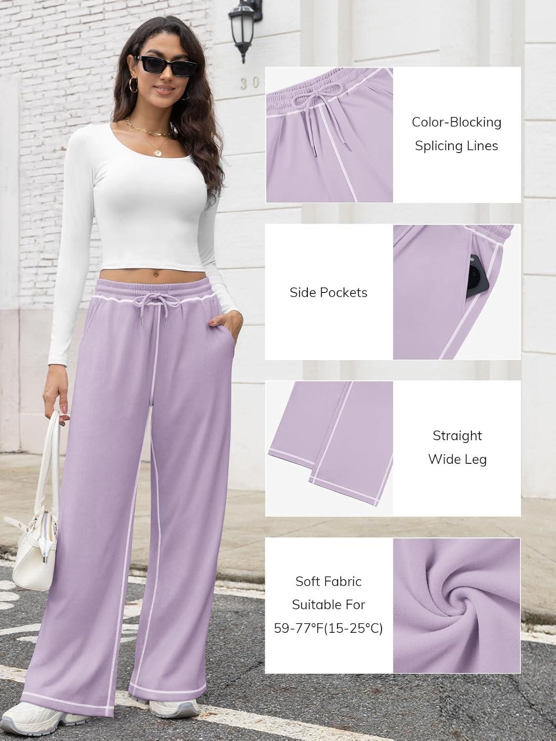 ATHMILE Women Sweatpants Soft Jogging Straight Pajama Sweats Wide Leg Sweatpants Women Lounge Pants Joggers 2025(Purple)