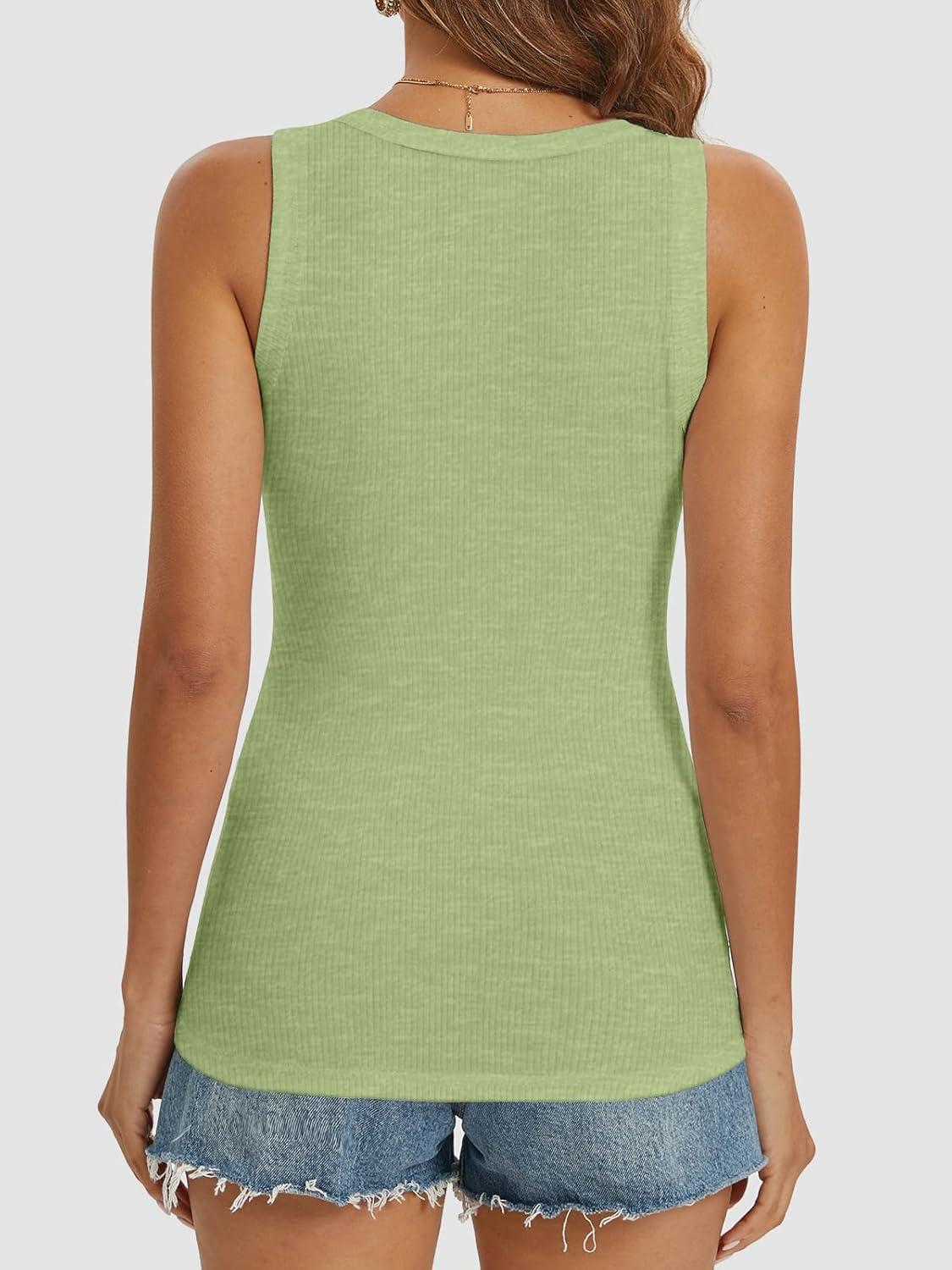 ATHMILE Women Tank Tops Summer Casual Ribbed Sleeveless Basic Cami Top Slim Henley Button Down Blouses Beach(Grass)