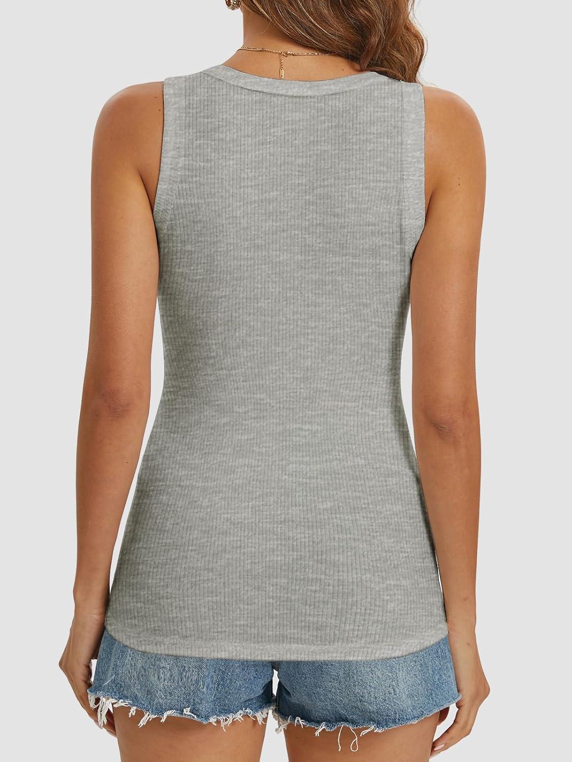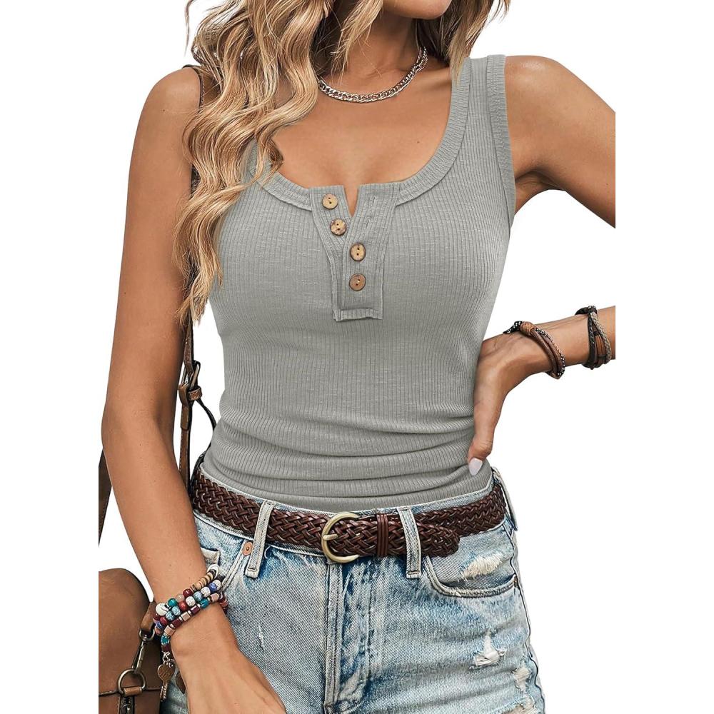ATHMILE Women Tank Tops Summer Casual Ribbed Sleeveless Basic Cami Top Slim Henley Button Down Blouses Beach(Lightgrey)
