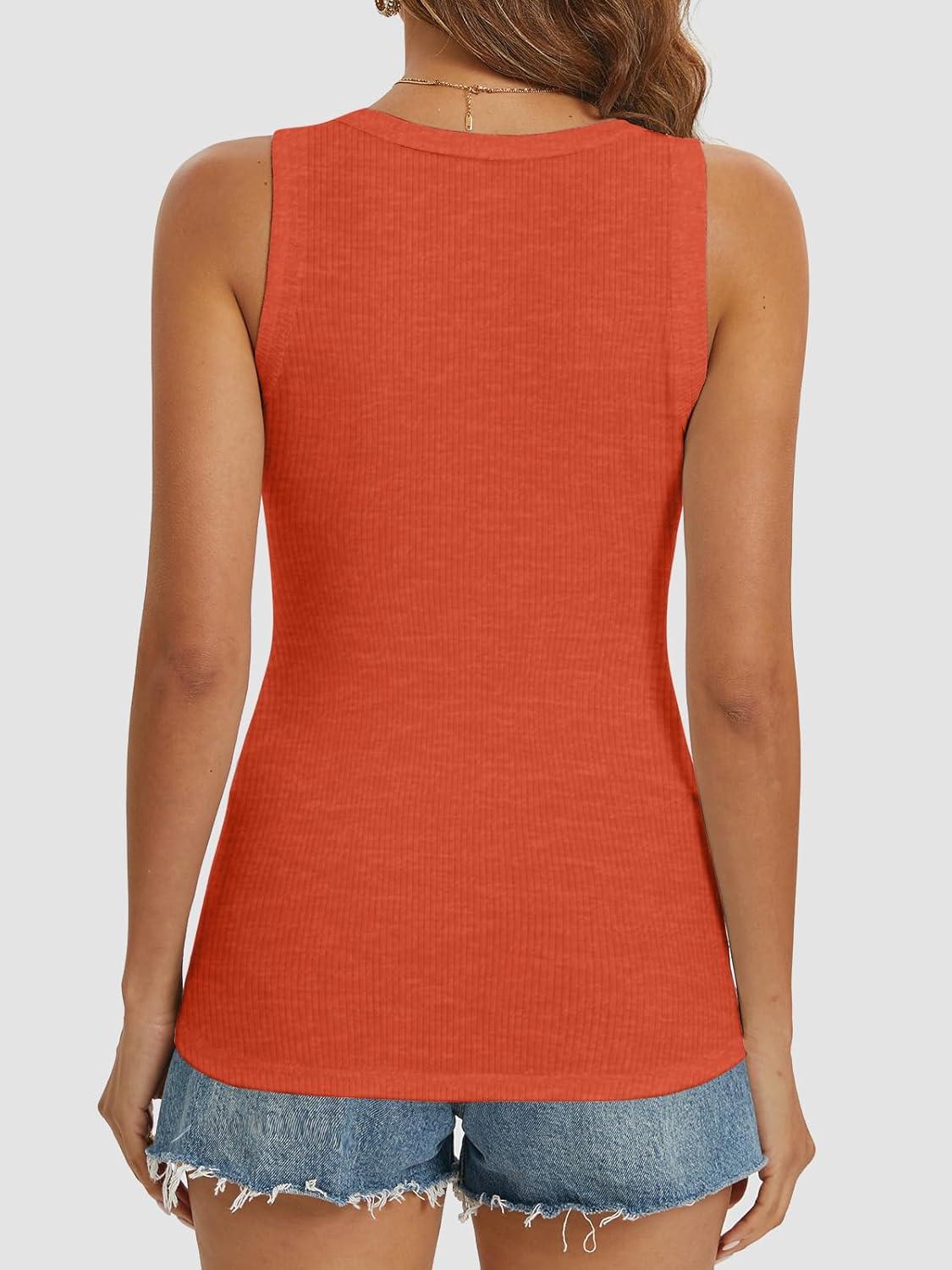 ATHMILE Women Tank Tops Summer Casual Ribbed Sleeveless Basic Cami Top Slim Henley Button Down Blouses Beach(Orange)