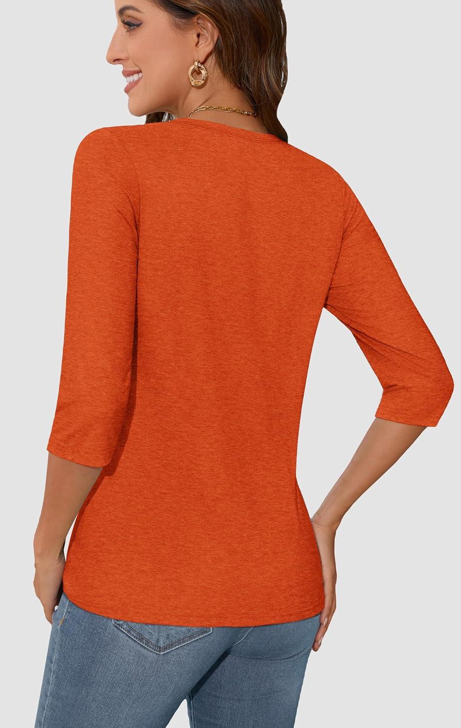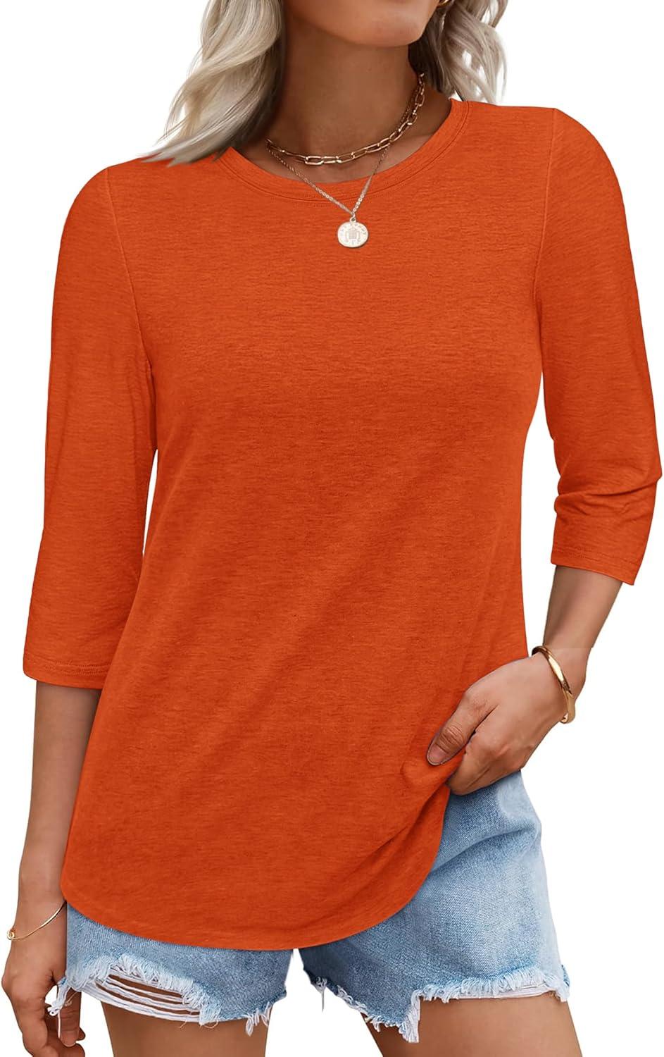 ATHMILE Womens 3/4 Sleeve T-Shirts Summer Tops Fall Fashion Blouses Beach Vacation Clothes Spring Tunic 2025 Trendy(Orange)