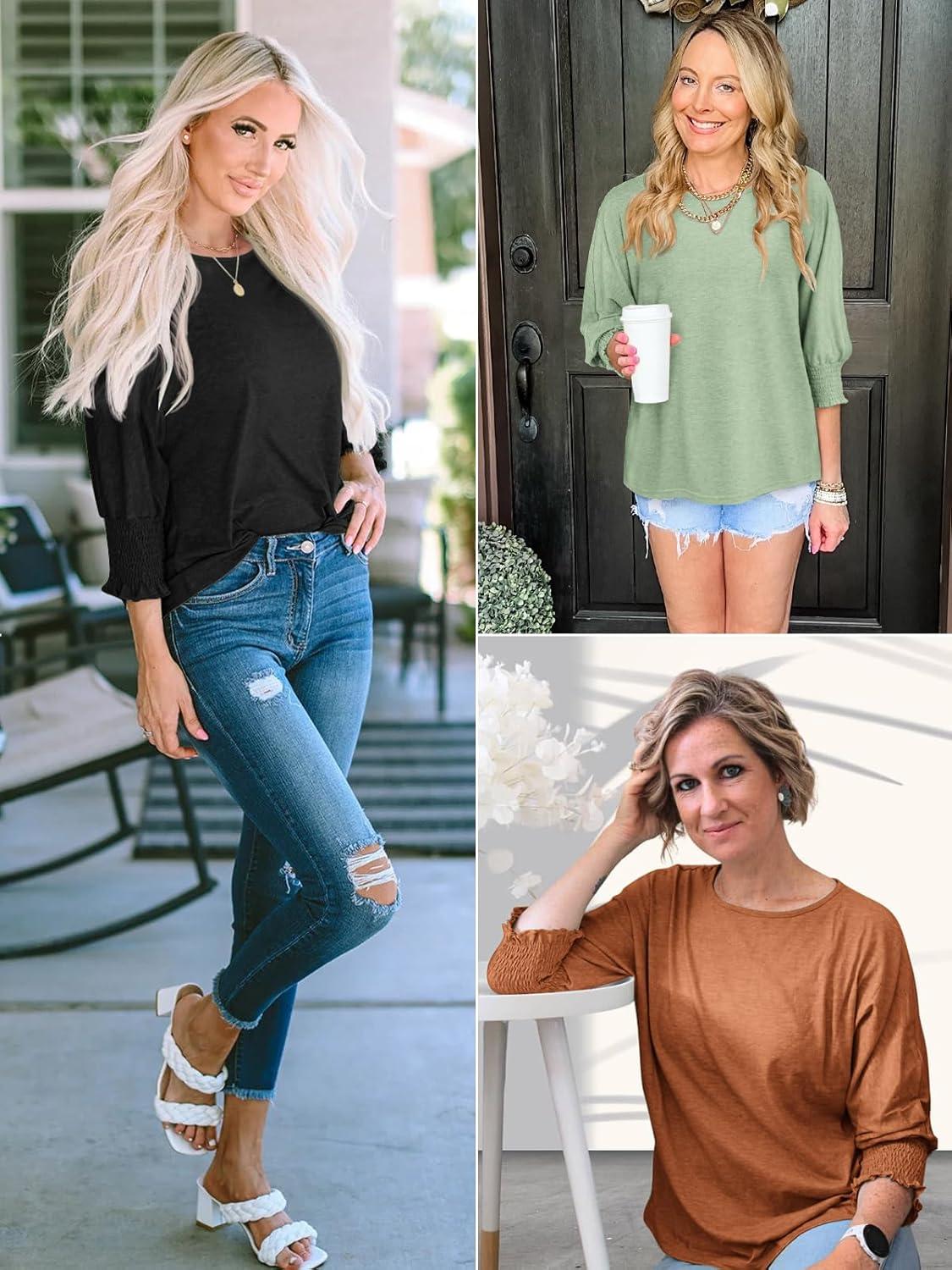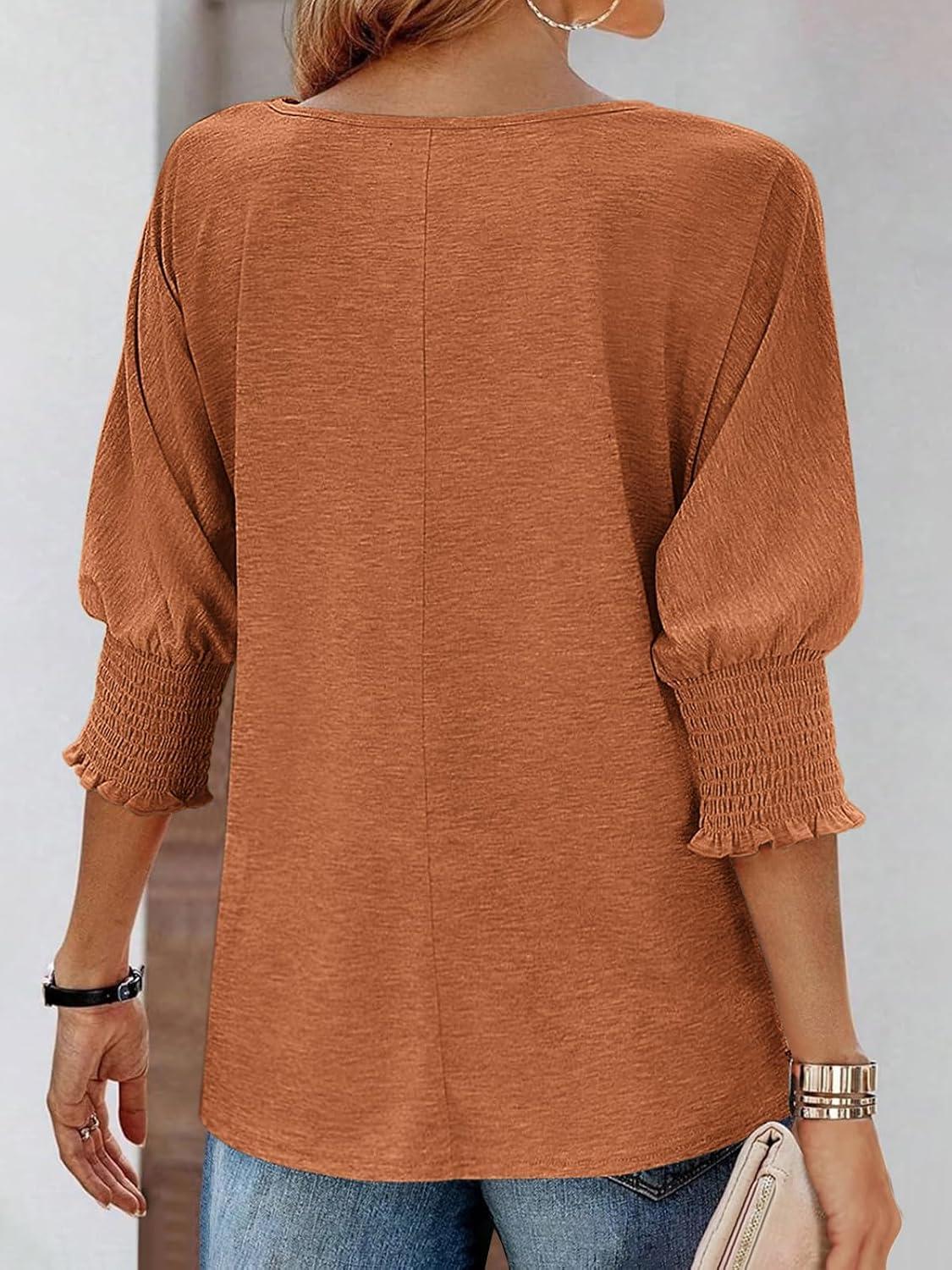ATHMILE Womens 3/4 Sleeve Tops Fall Dressy Casual Blouses for Women 2025 Fashion Cute Crewneck Shirts Work Business Tees(Coffee)