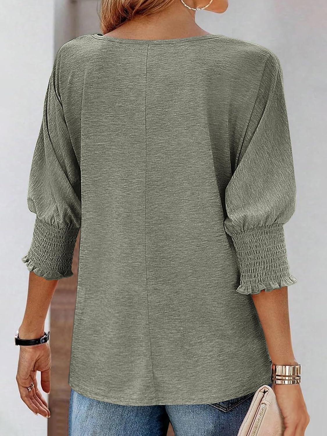 ATHMILE Womens 3/4 Sleeve Tops Fall Dressy Casual Blouses for Women 2025 Fashion Cute Crewneck Shirts Work Business Tees(Grey)
