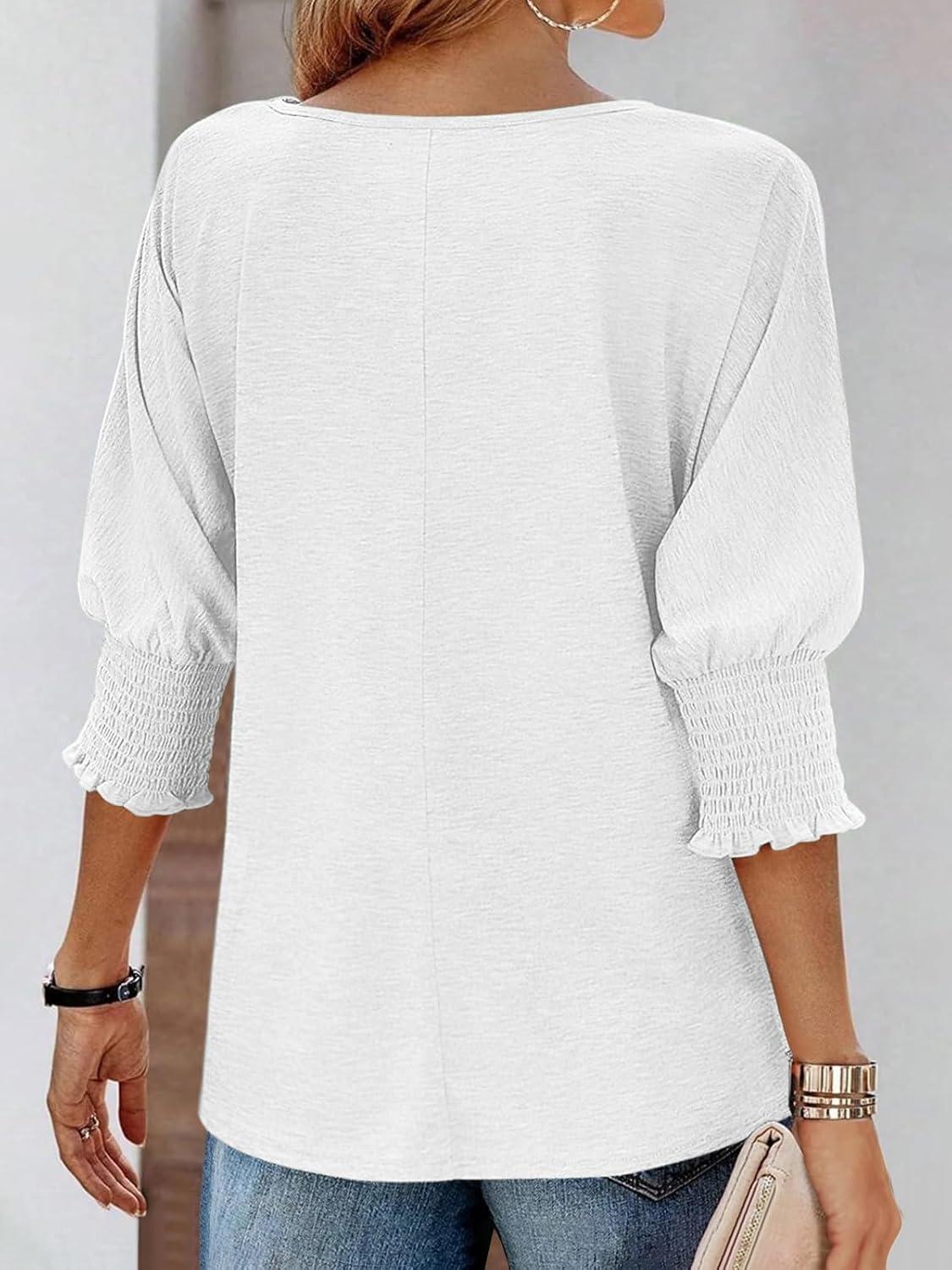 ATHMILE Womens 3/4 Sleeve Tops Fall Dressy Casual Blouses for Women 2025 Fashion Cute Crewneck Shirts Work Business Tees(White)