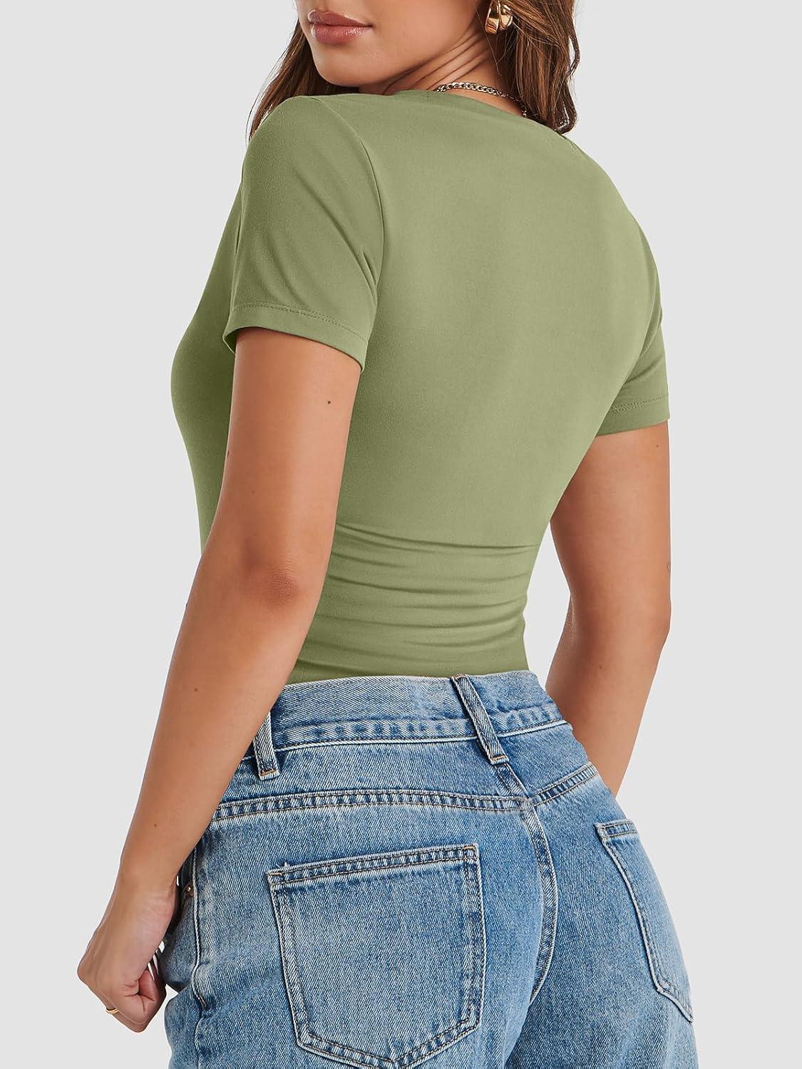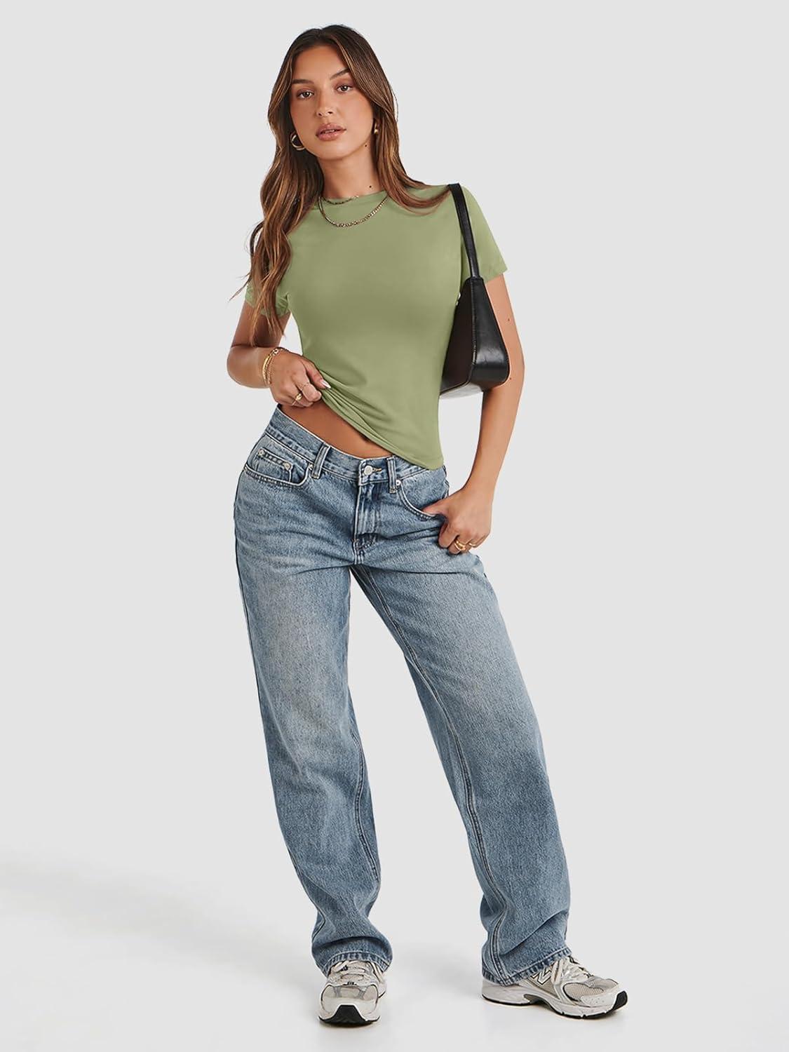 ATHMILE Womens Basic T-Shirts Going Out Crop Tops Tight Slim Fit Cute Teen Girls Short Sleeve/Long Sleeve Y2k Clothes(1-light Green)