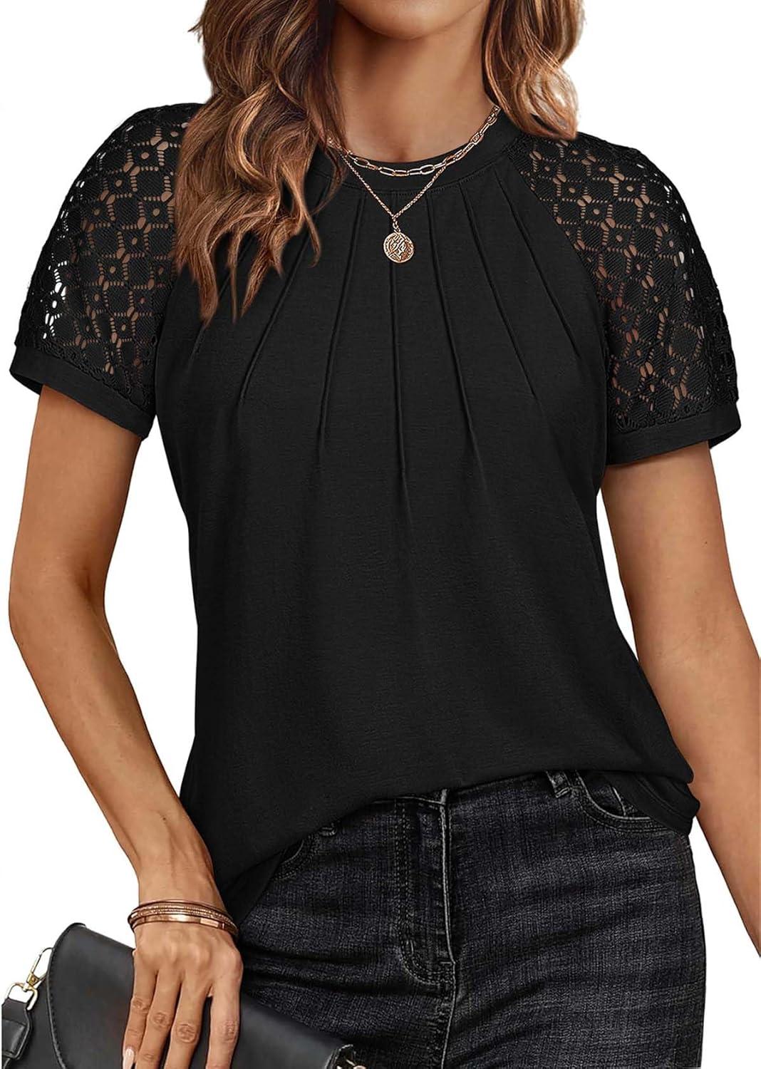 ATHMILE Womens Blouses Business Date Outfits Spring Summer Fall Work Tops Fashion Lace Short Sleeve Casual Shirts 2025(Black)