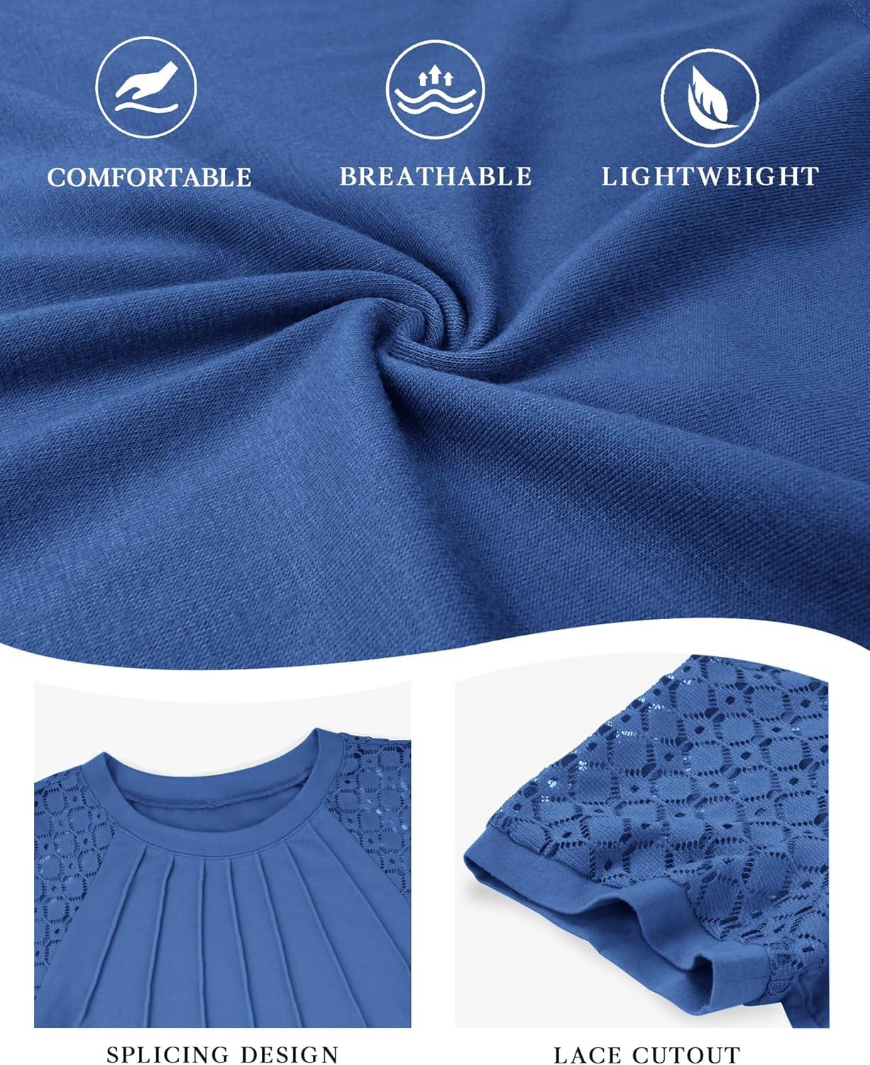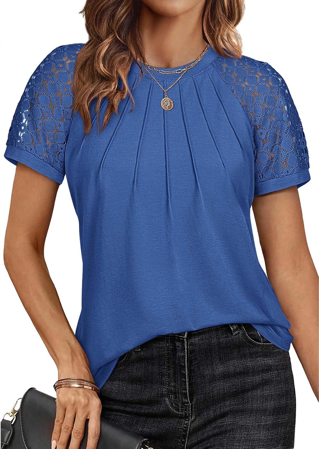 ATHMILE Womens Blouses Business Date Outfits Spring Summer Fall Work Tops Fashion Lace Short Sleeve Casual Shirts 2025(Blue)