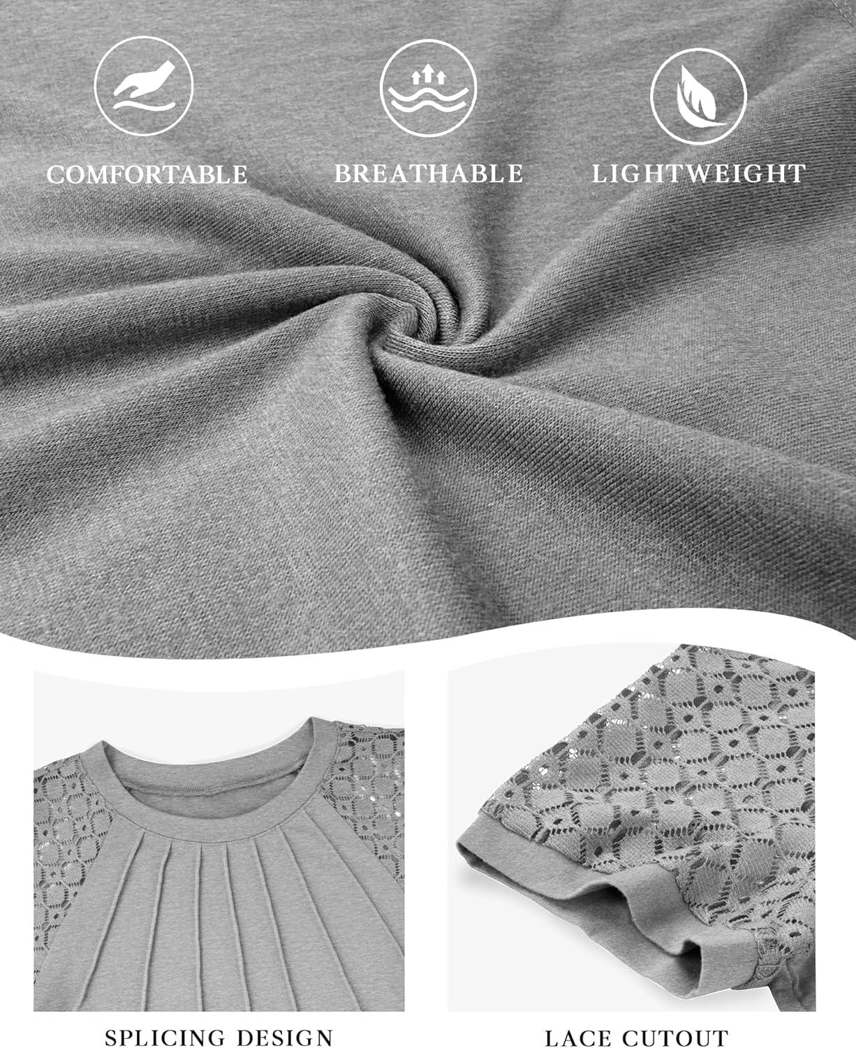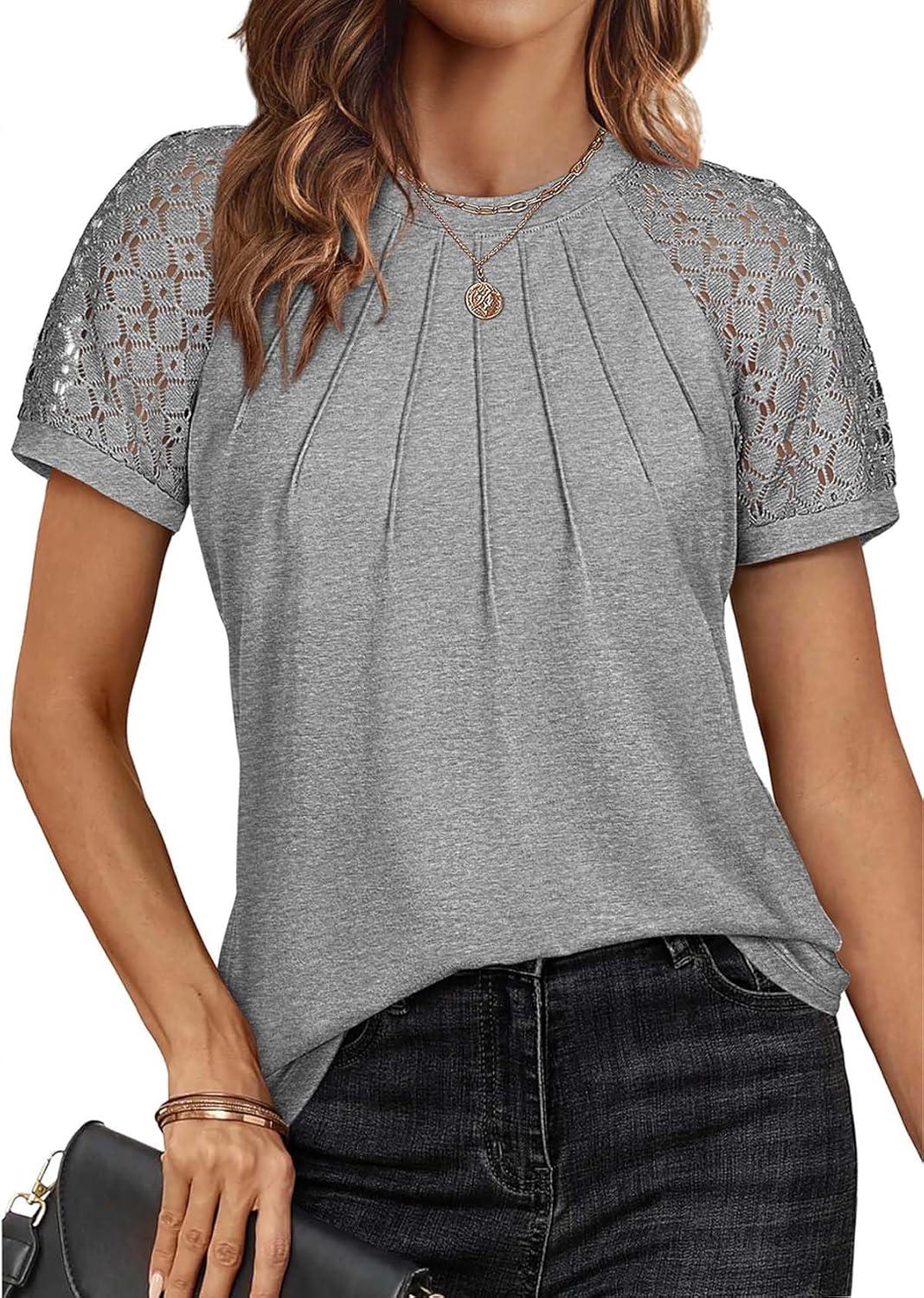 ATHMILE Womens Blouses Business Date Outfits Spring Summer Fall Work Tops Fashion Lace Short Sleeve Casual Shirts 2025(Grey)