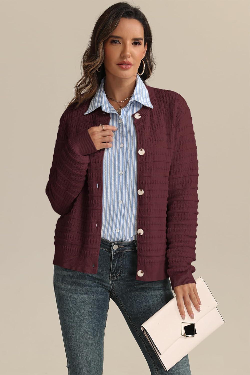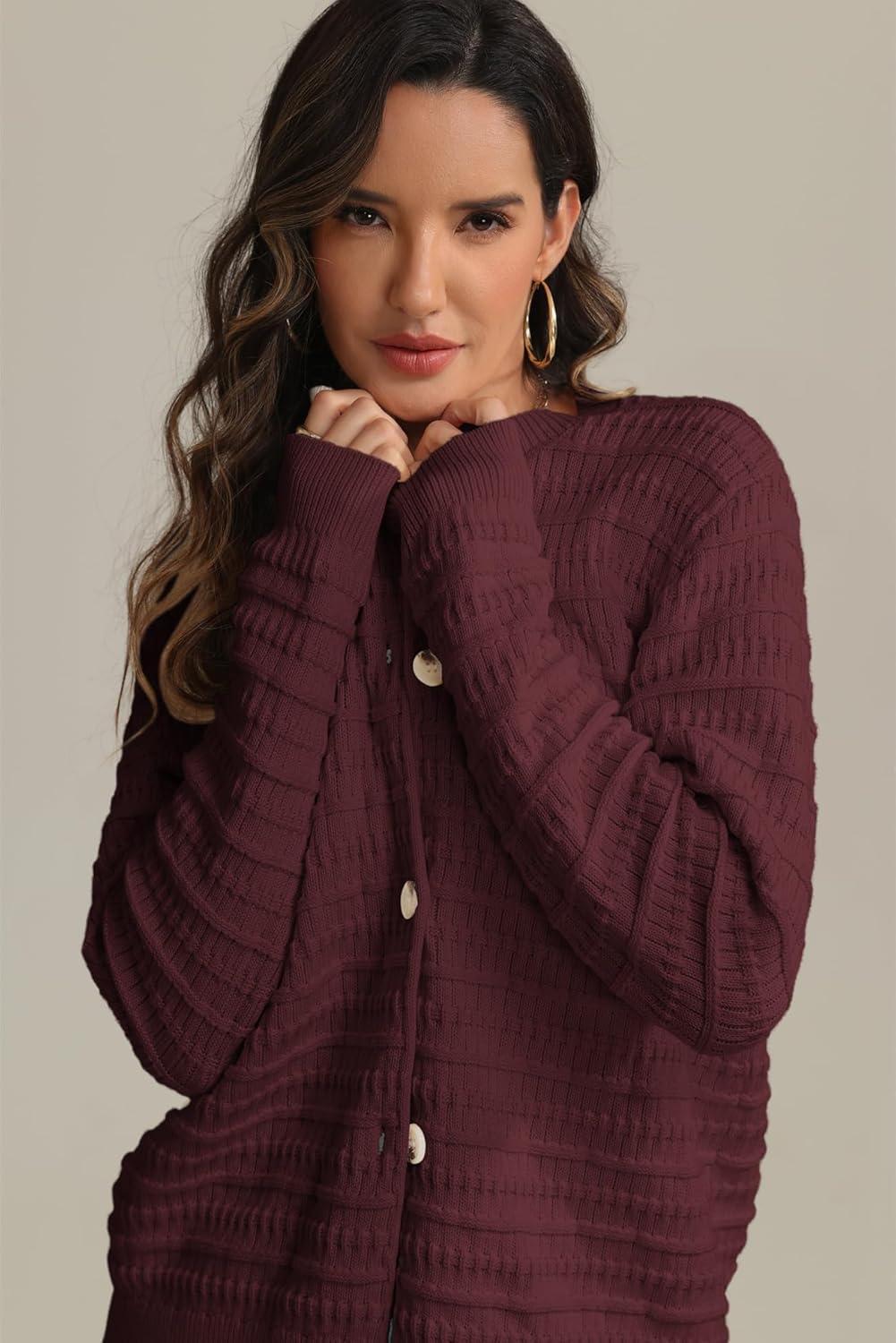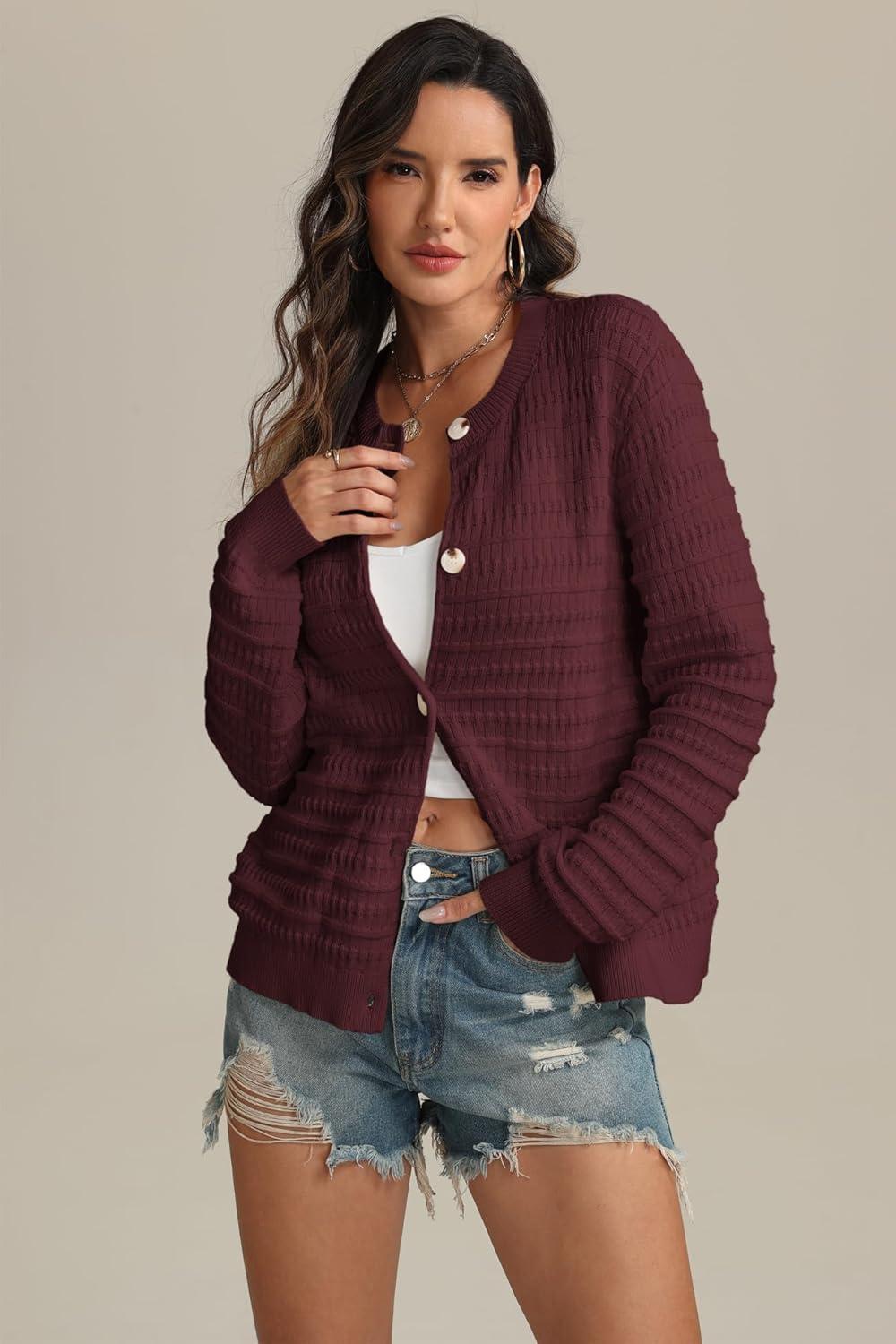ATHMILE Womens Cardigan Sweaters Casual Long Sleeve Button Down Crewneck Casual Knit Trendy Jackets Cropped Fall Winter Clothes