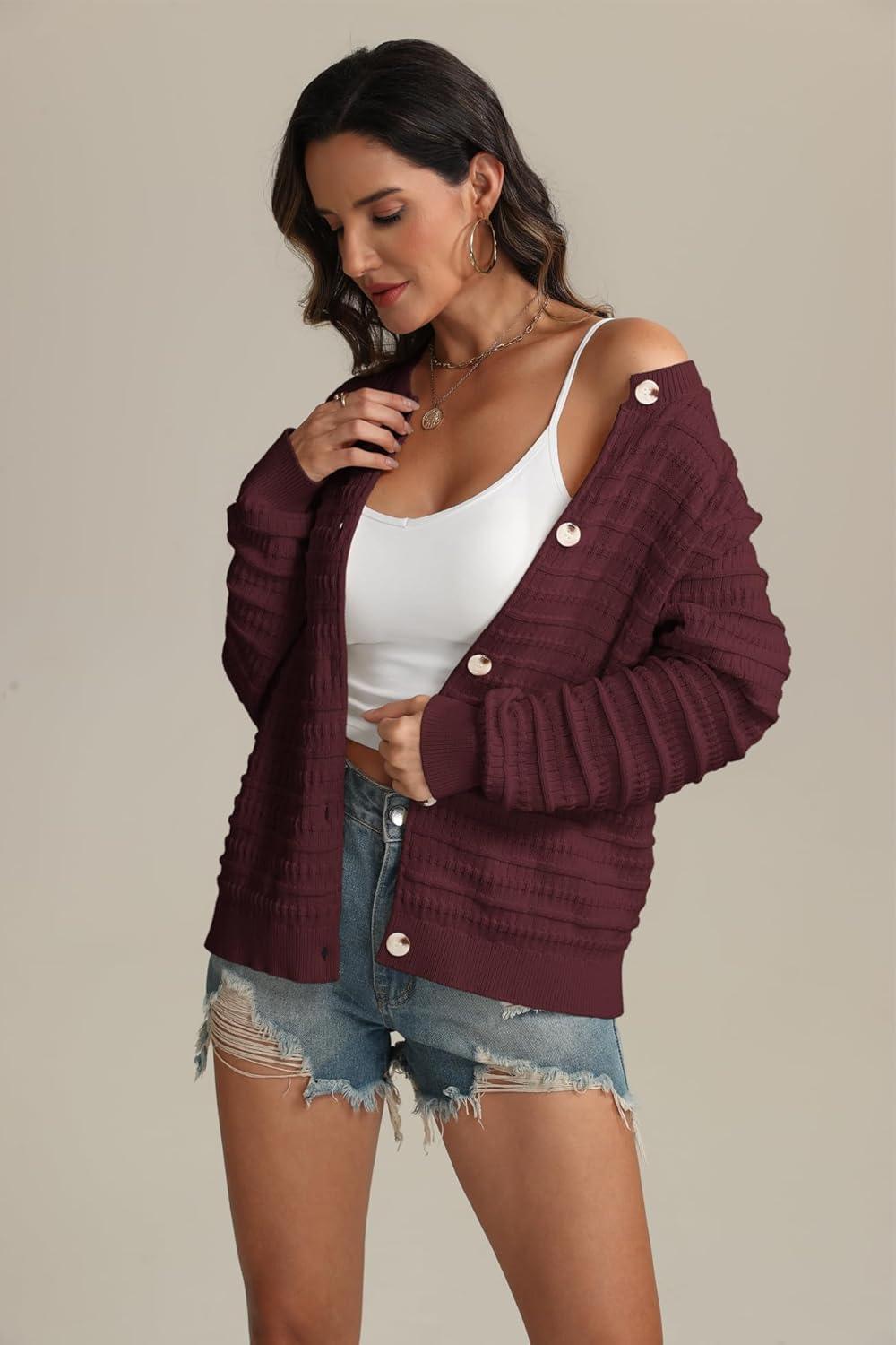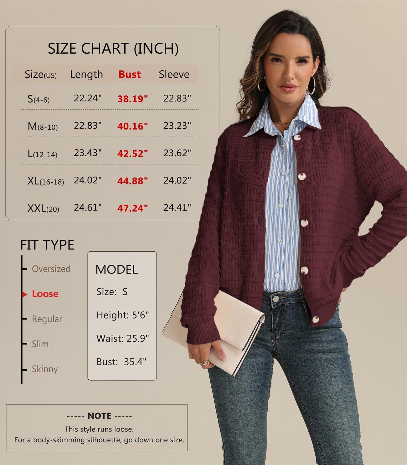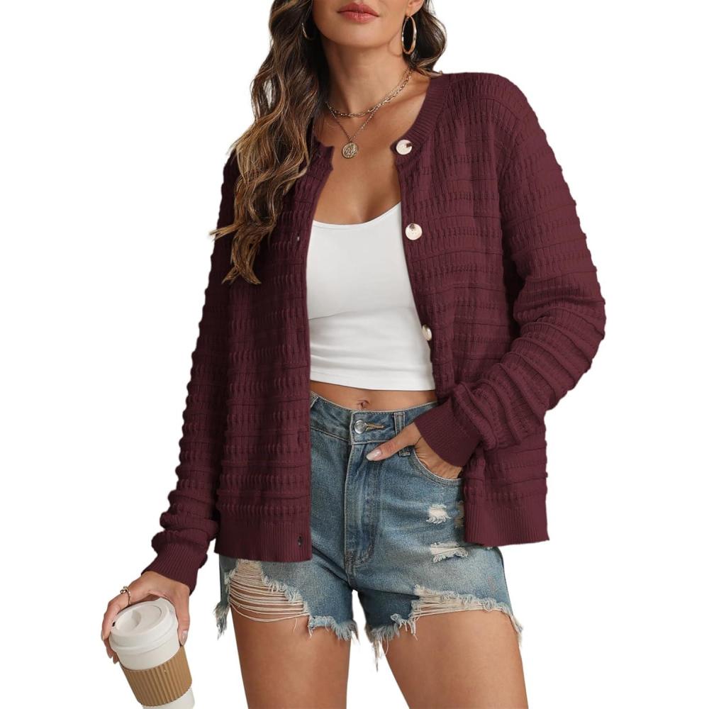 ATHMILE Womens Cardigan Sweaters Casual Long Sleeve Button Down Crewneck Casual Knit Trendy Jackets Cropped Fall Winter Clothes