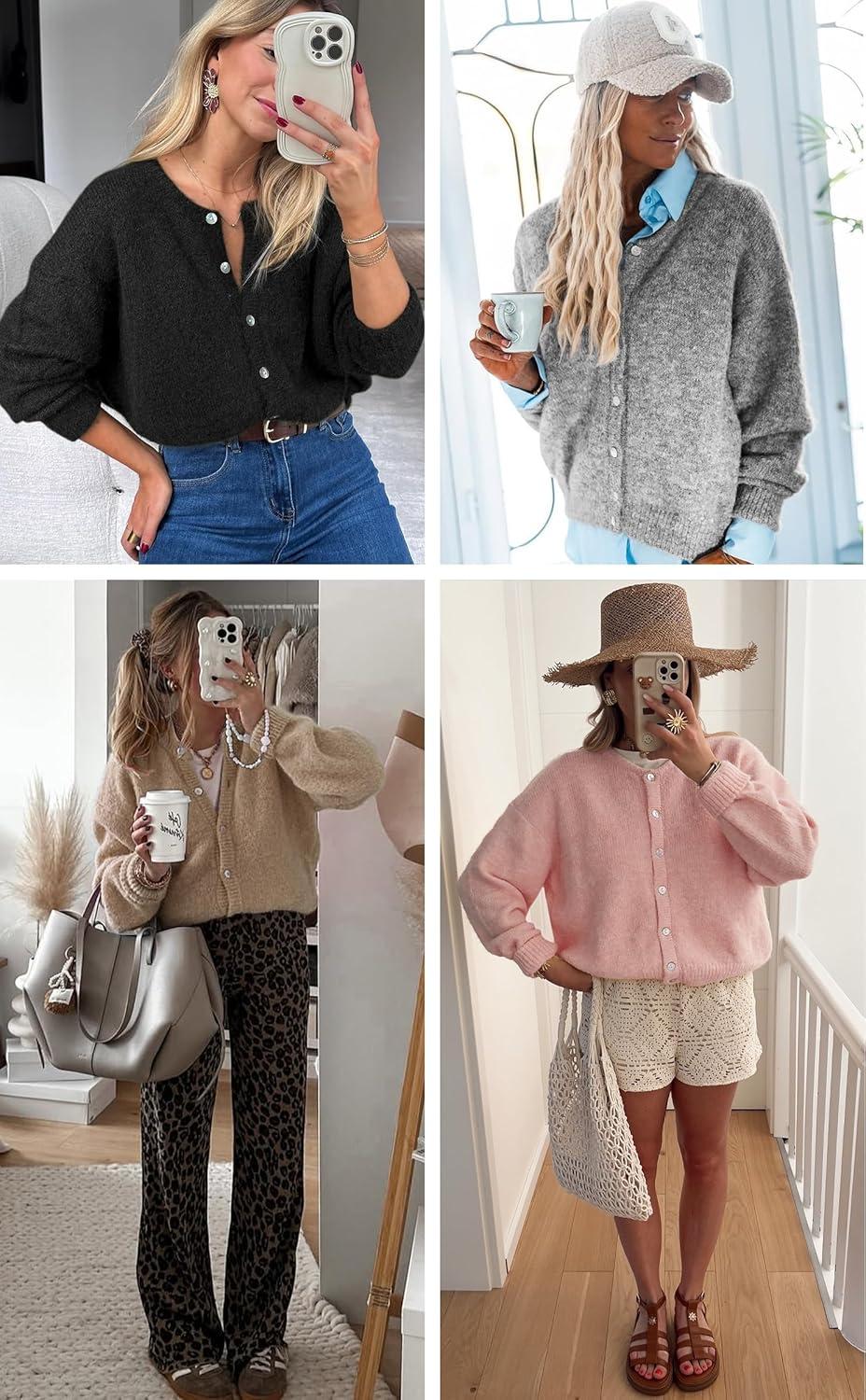 ATHMILE Fall Long Sleeve Cardigans for Women Sweater Fashion Open Front Winter Button Down Crewneck Loose Knit Jacket 2025