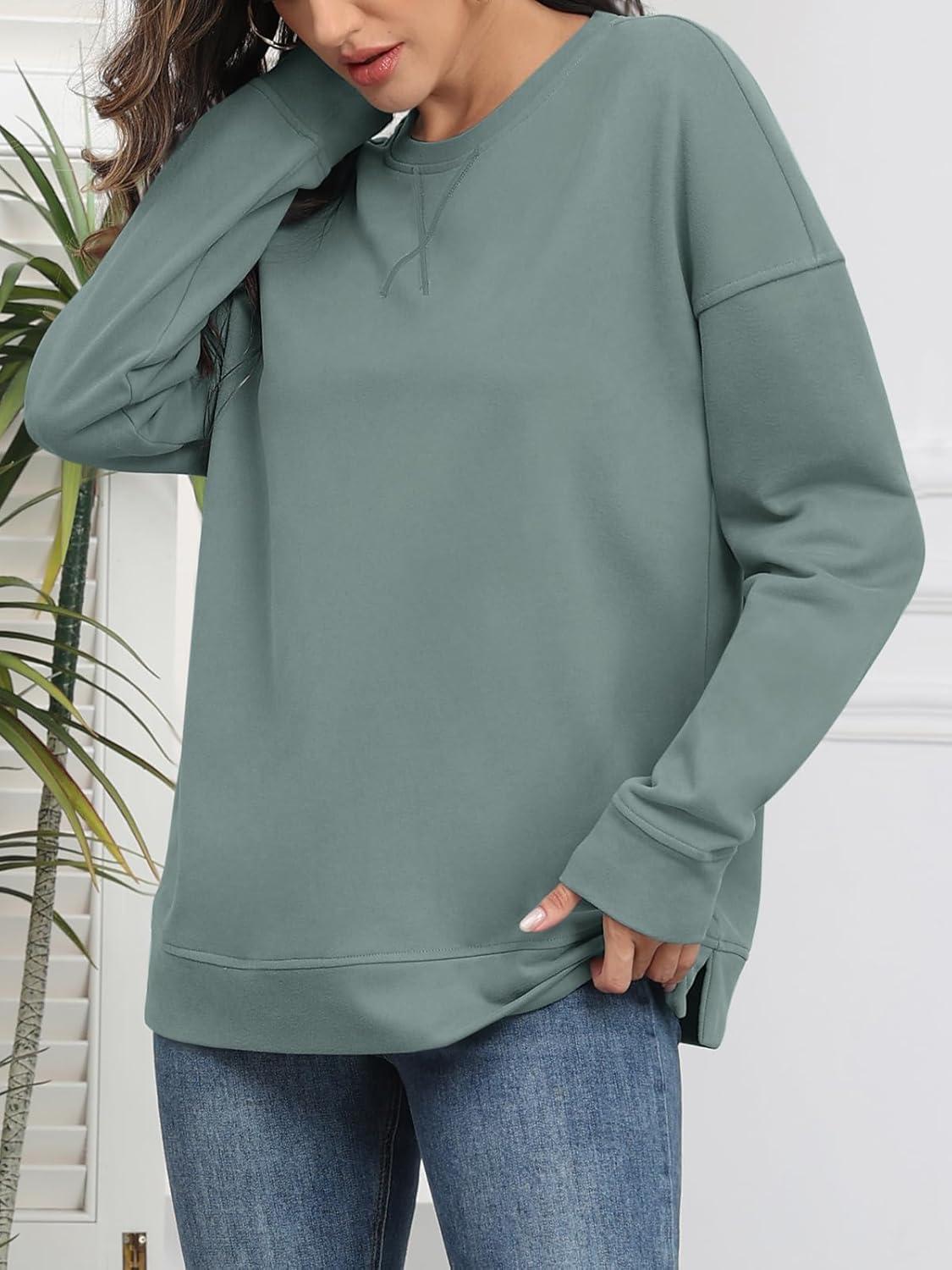 ATHMILE Womens Casual Crew Neck Sweatshirt Loose Soft Long Sleeve Shirts Oversized Pullover Tops Fall Outfits(Grey)