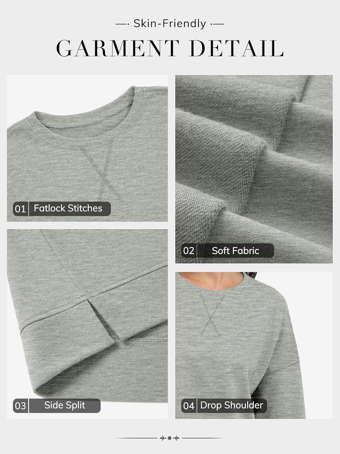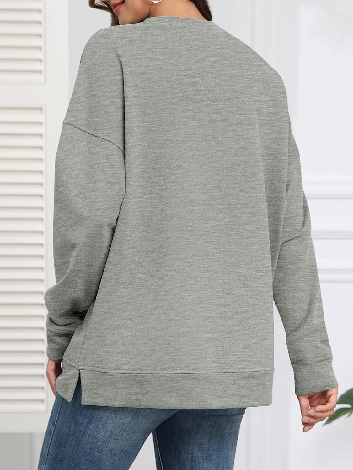 ATHMILE Womens Casual Crew Neck Sweatshirt Loose Soft Long Sleeve Shirts Oversized Pullover Tops Fall Outfits(Grey)