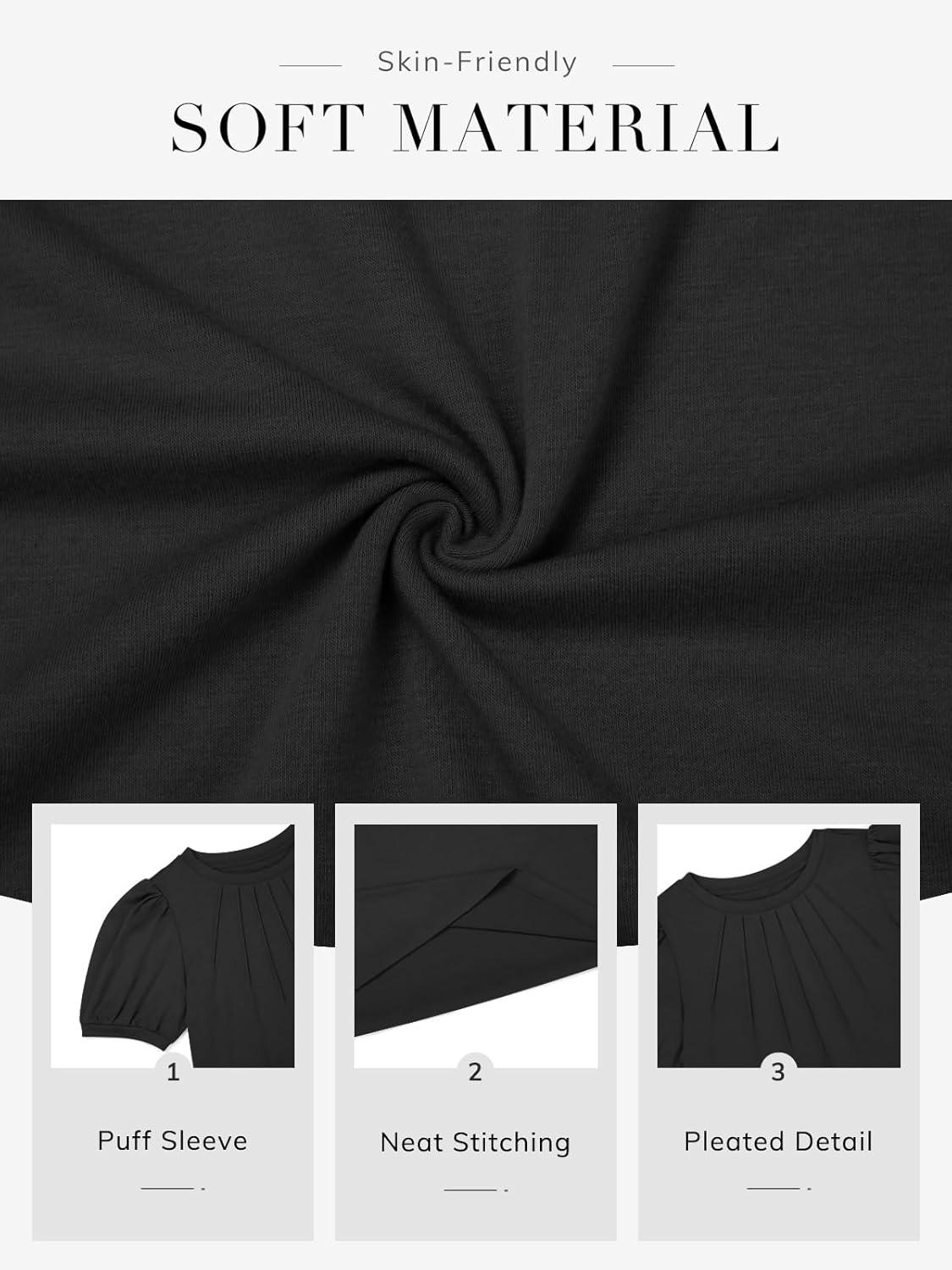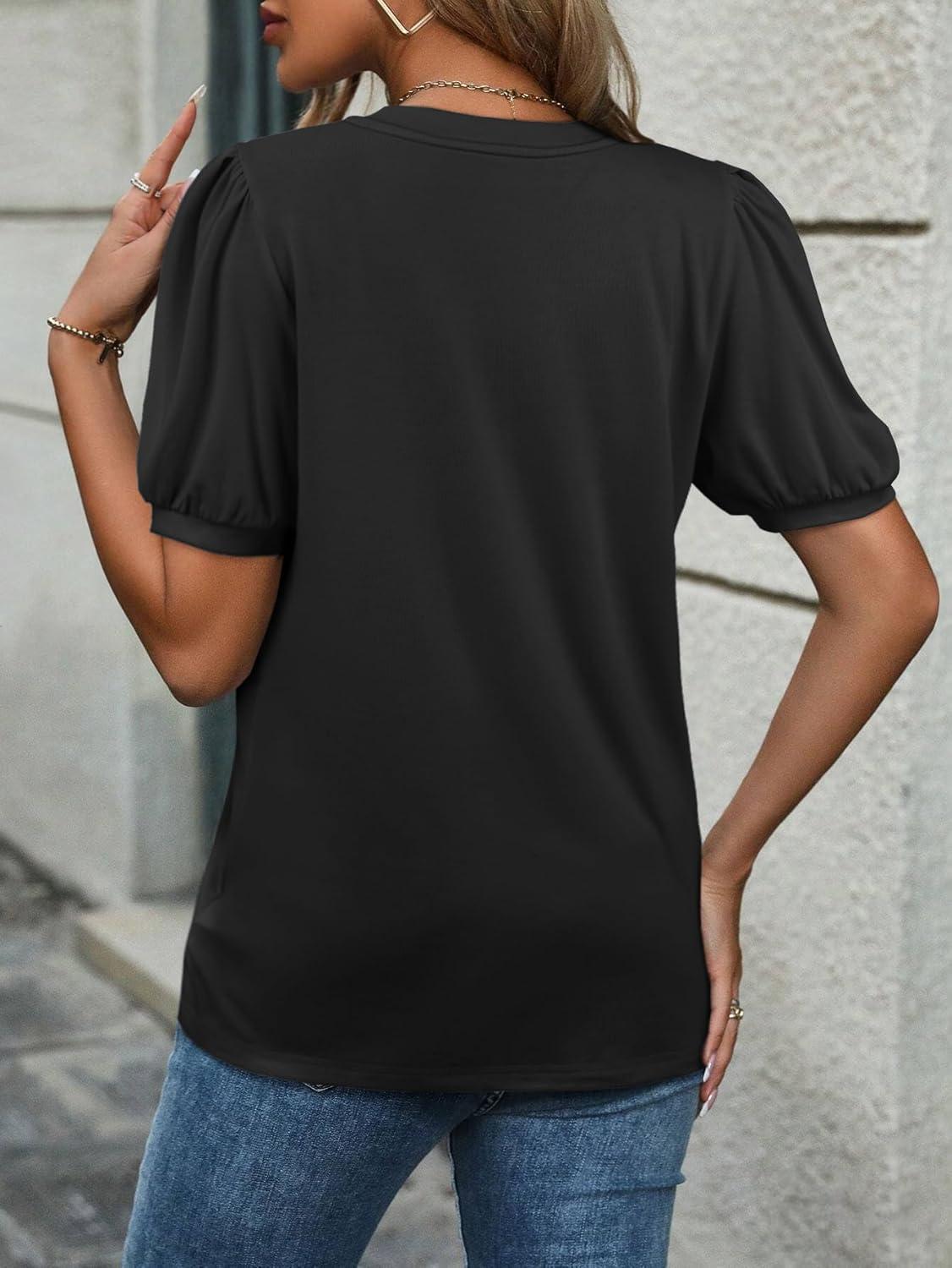 ATHMILE Womens Cute Summer Tops Puff Short Sleeve Shirts Dressy Blouses Trendy Business Casual Outfits(Black)