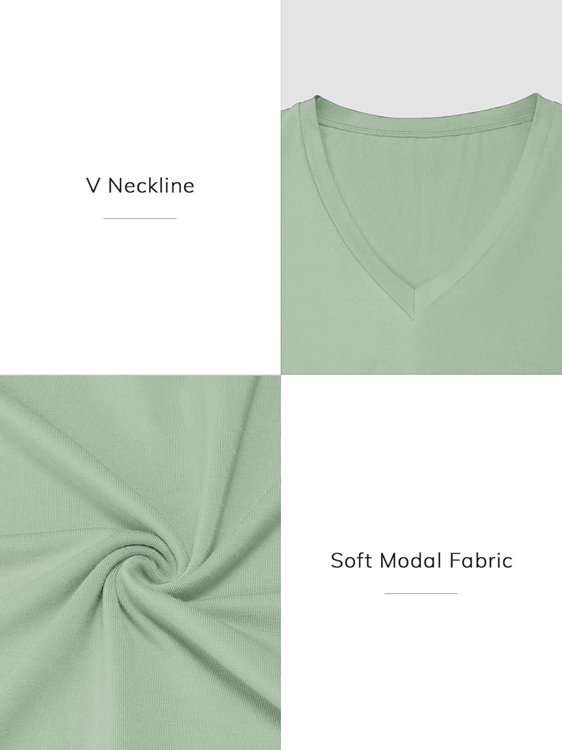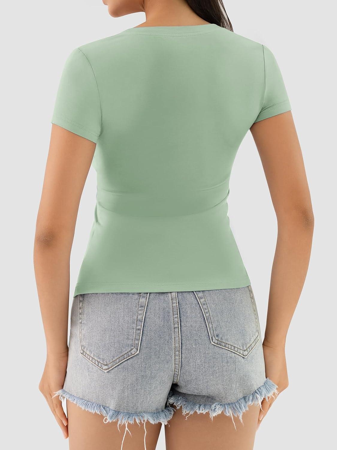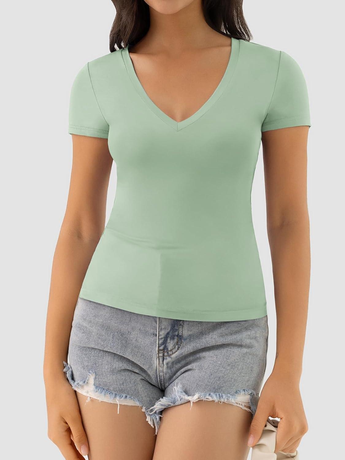 ATHMILE Womens Deep V Neck Short Sleeve Slim Fit T Shirt Tops Tee(Greygreen)