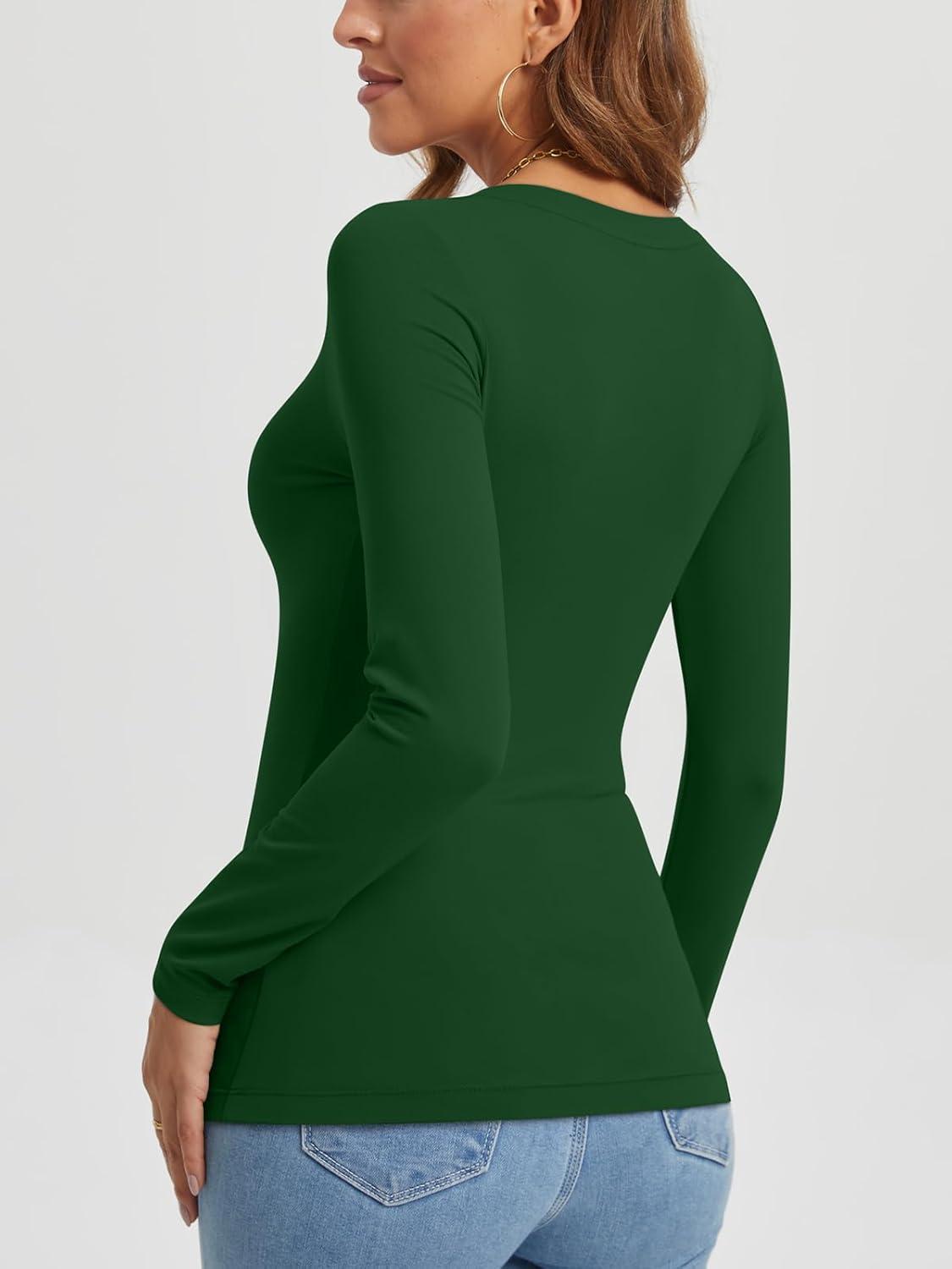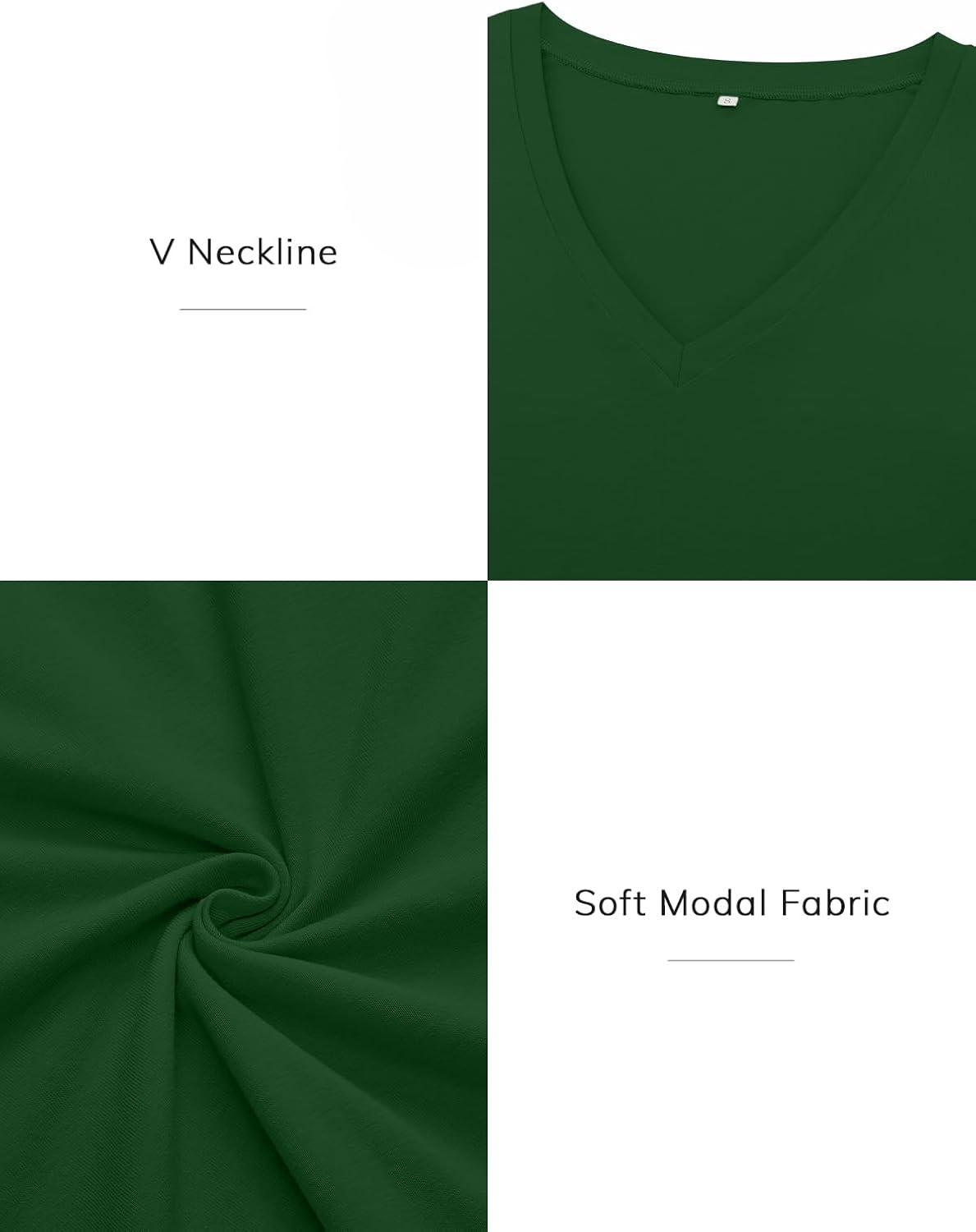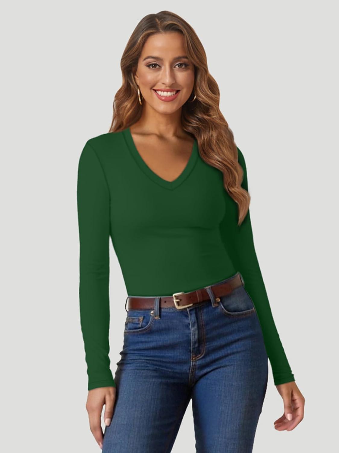 ATHMILE Womens Fall Deep V Neck Long Sleeve Shirts Modal Slim Fit Basic Tee Tops 2025(A-dark Green)