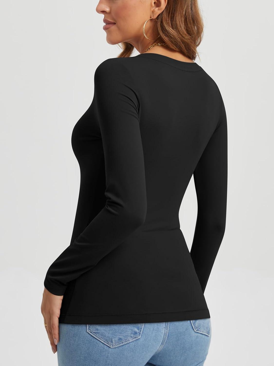 Get up to 60% off on ATHMILE Womens Fall Deep V Neck Long Sleeve Shirts Modal Slim Fit Basic Tee Tops 2025(B-black) styles during our winter sale event.