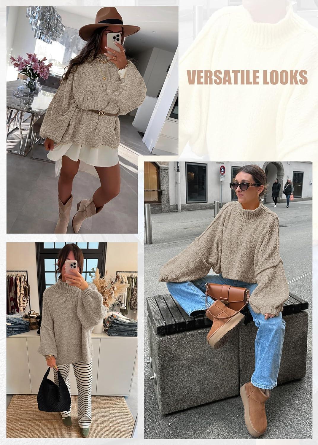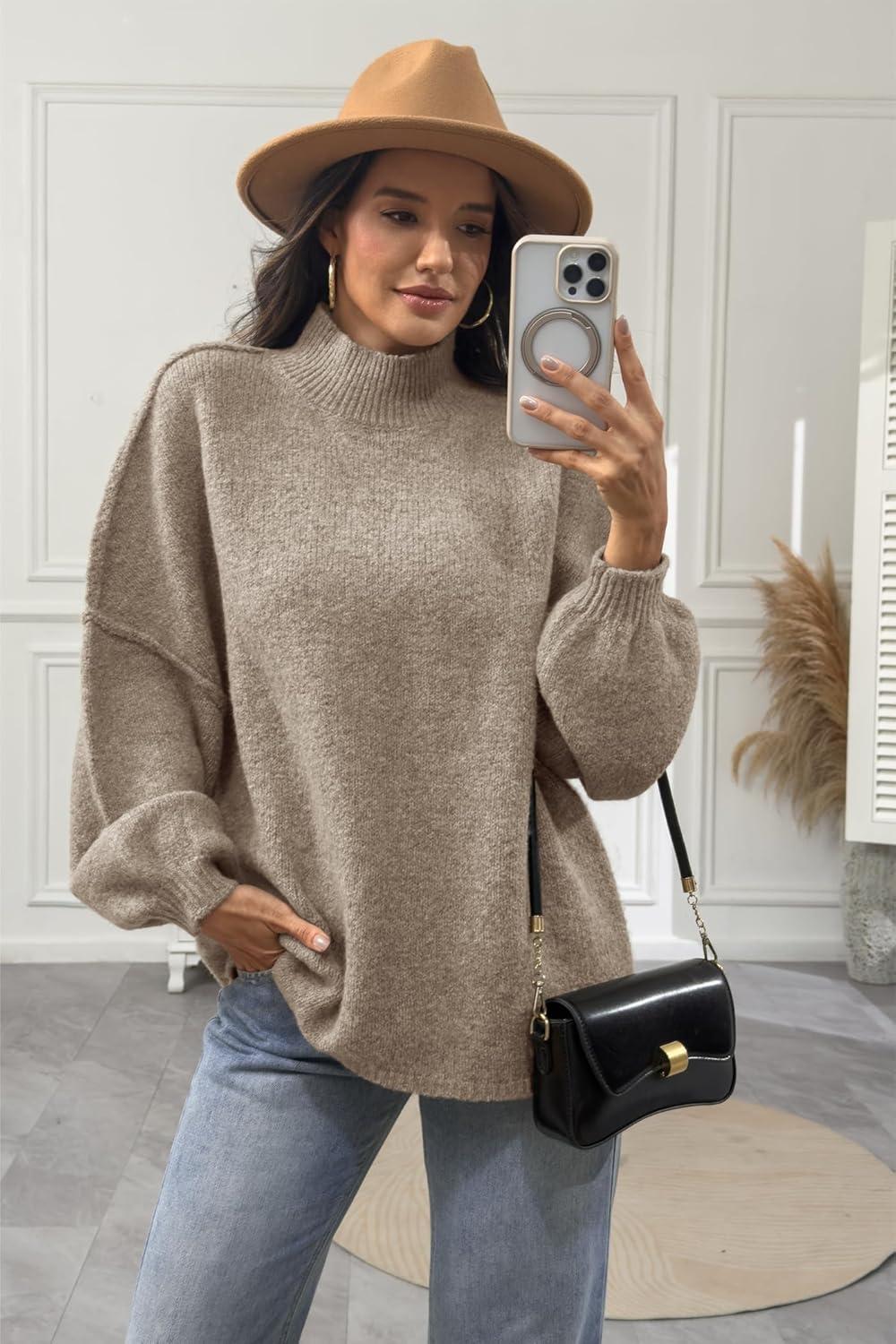 ATHMILE Womens Fall Fashion Oversized Sweaters Chunky Knit Mock Neck Long Sleeve Casual Trendy Pullover Winter Clothes 2025(Camel)