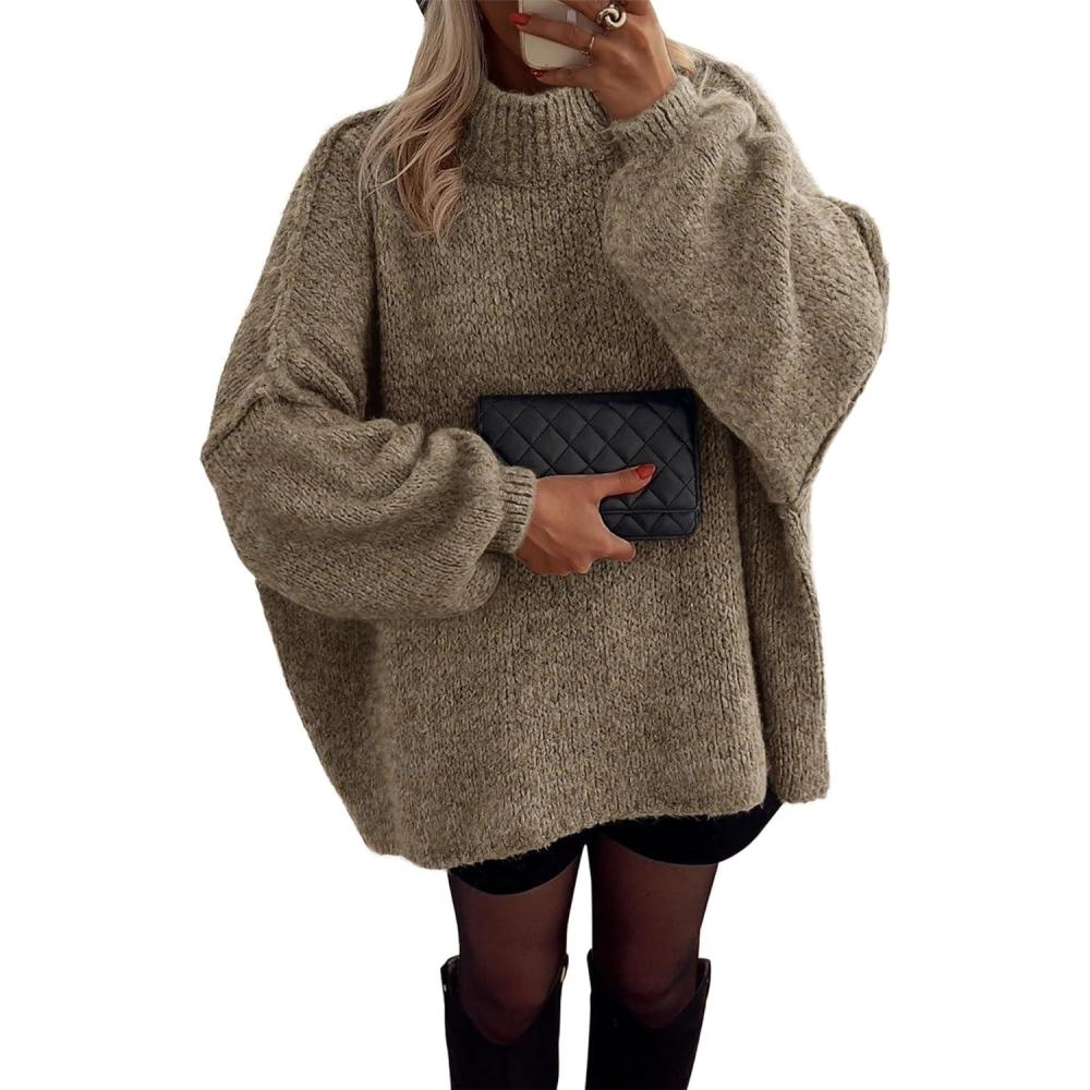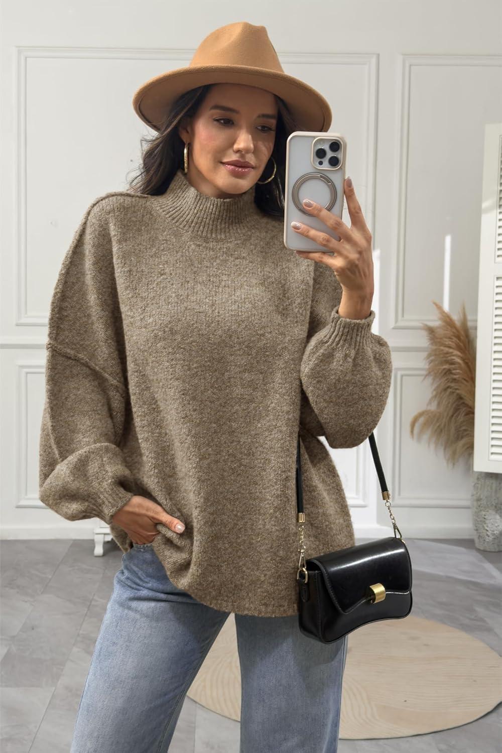 ATHMILE Womens Fall Fashion Oversized Sweaters Chunky Knit Mock Neck Long Sleeve Casual Trendy Pullover Winter Clothes 2025(Khaki)