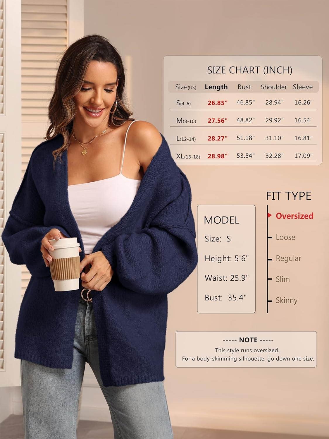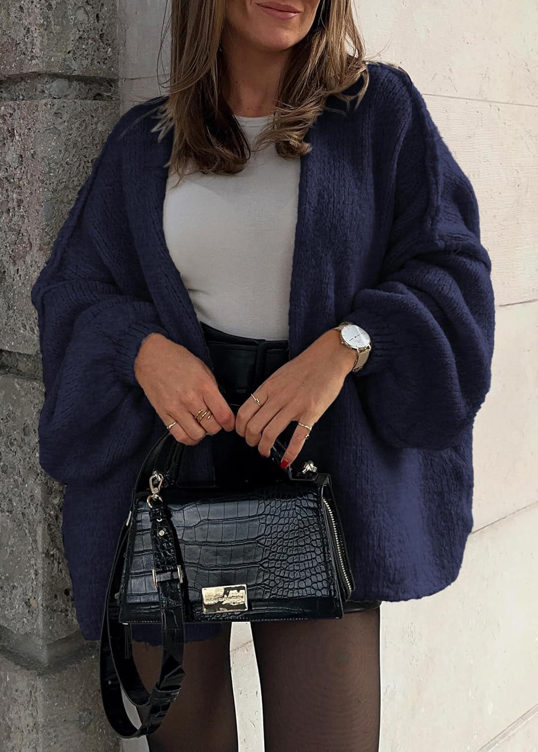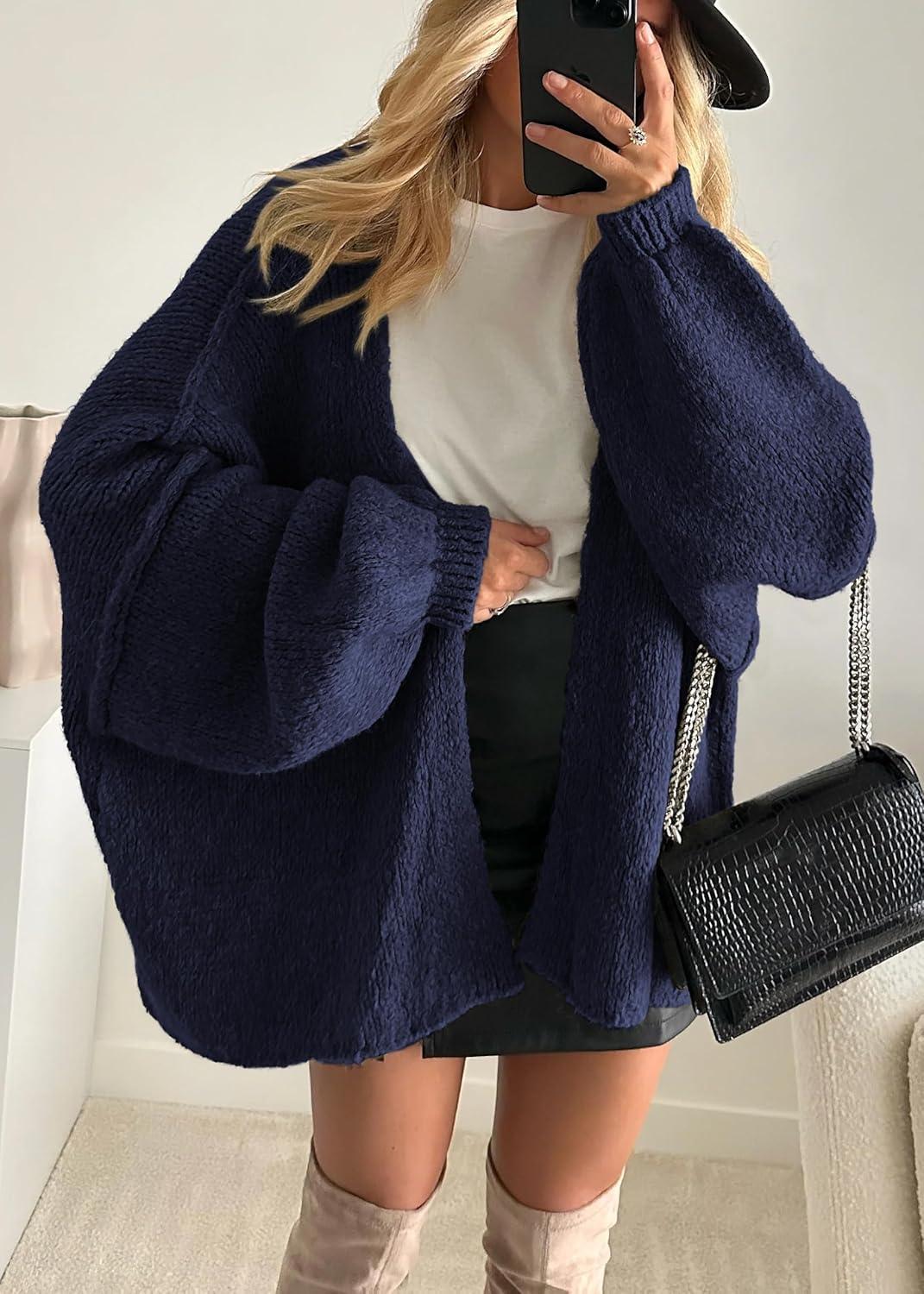 ATHMILE Womens Fall Oversized Cardigan Sweaters Long Lantern Sleeve Knit Open Front Lightweight Winter Fashion Clothes 2025(Navy Blue)