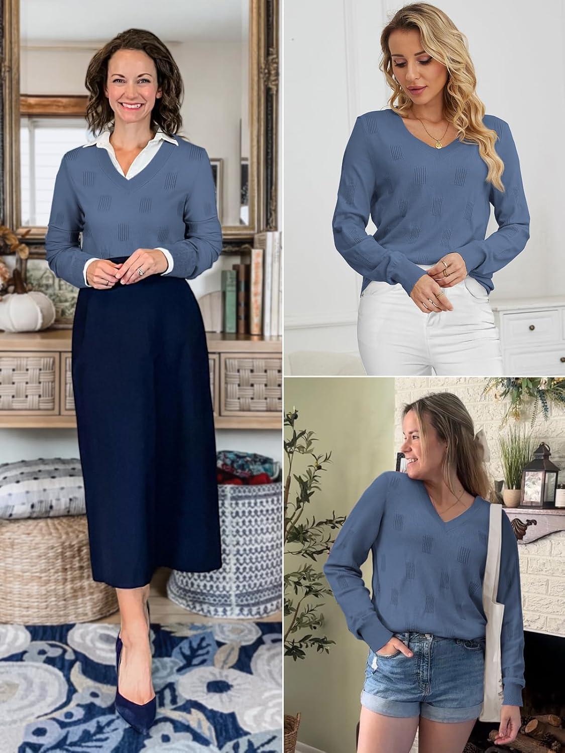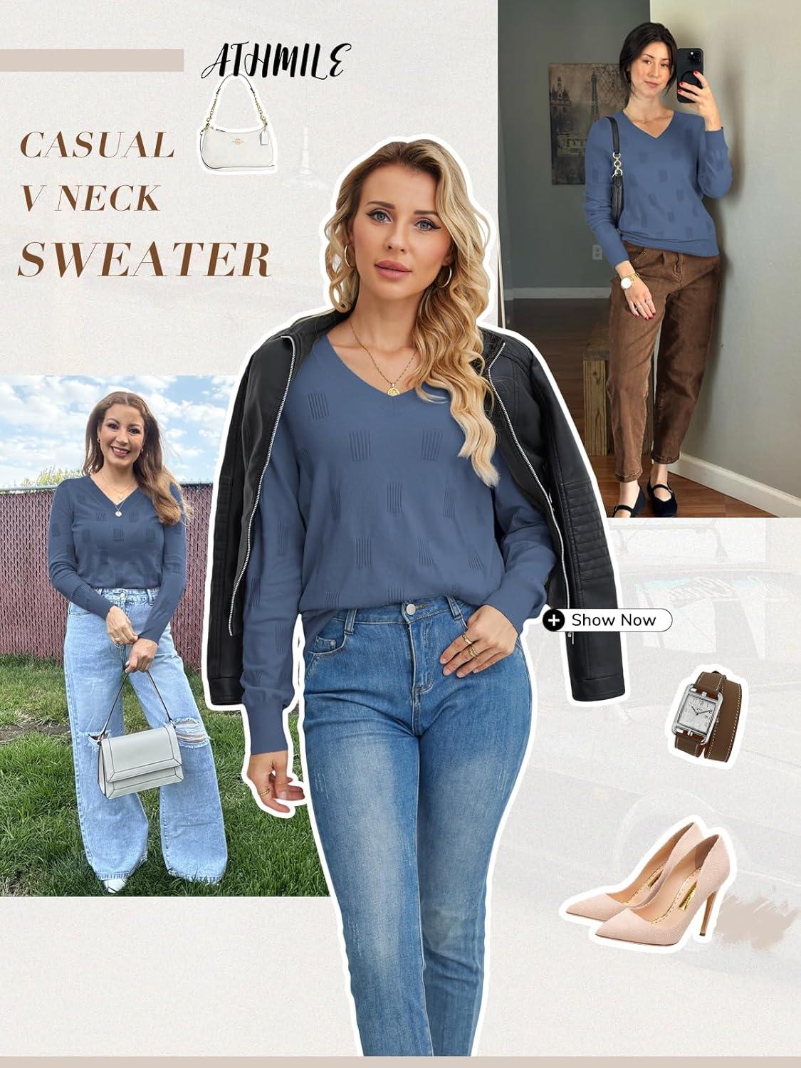 Don’t miss out on our limited-time offer: buy ATHMILE Women’s Fall Tops 2025 Fashion Trendy Pullover Sweater V Neck Long Sleeve Shirt Knit Blouse Clothes Outfits(Blue), get {accessory} 50% off!