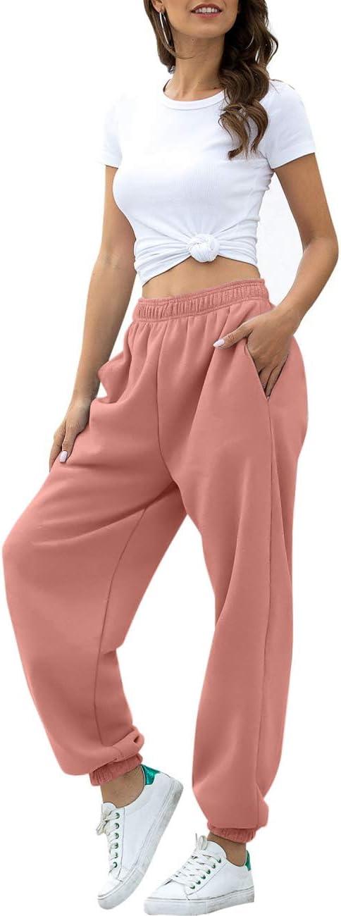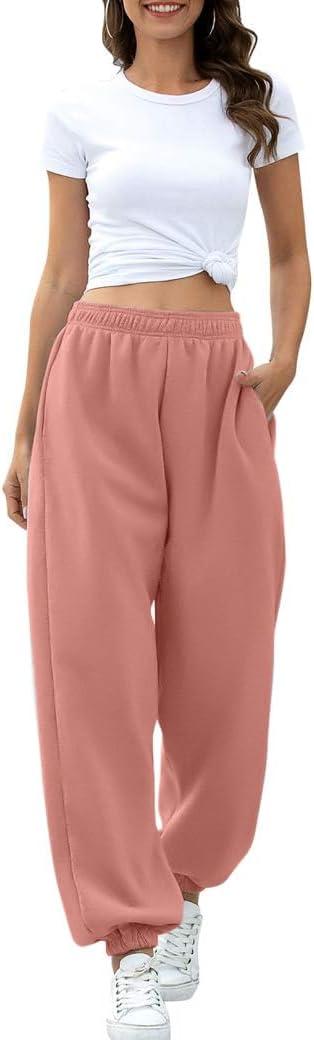ATHMILE Women’s High Waisted Sweatpants Workout Active Joggers Pants Baggy Lounge Bottoms(Pink)