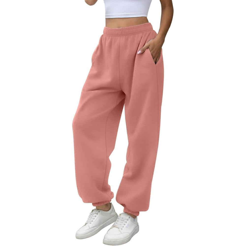 ATHMILE Women's High Waisted Sweatpants Workout Active Joggers Pants Baggy Lounge Bottoms(Pink)