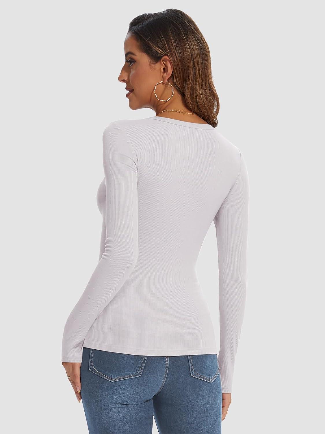ATHMILE Womens Long Sleeve Crewneck Ribbed Tops Fall Fitted Stretch Casual Basic T Shirts 2025(A-light Purple)