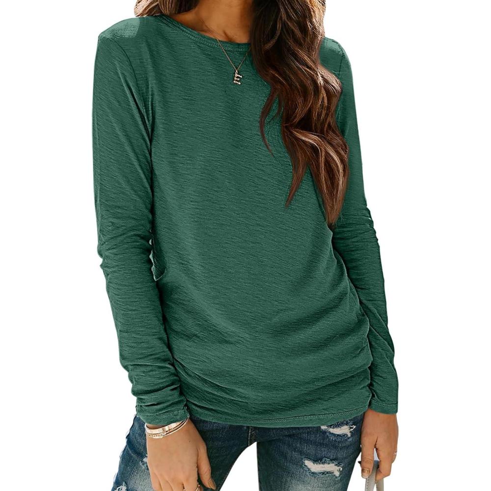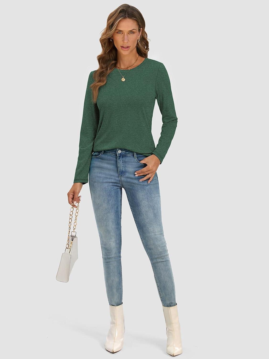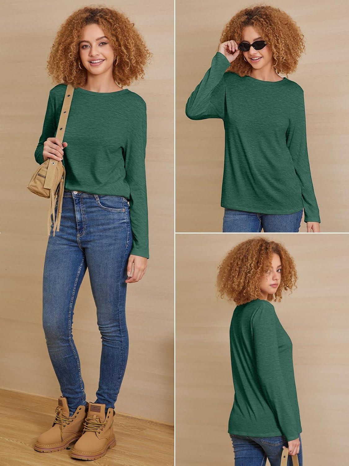 ATHMILE Womens Long Sleeve Shirts Basic Tee Fall Trendy Spring Top Business Casual Beach Vacation Workout 2025 Fashion(Dark Green)