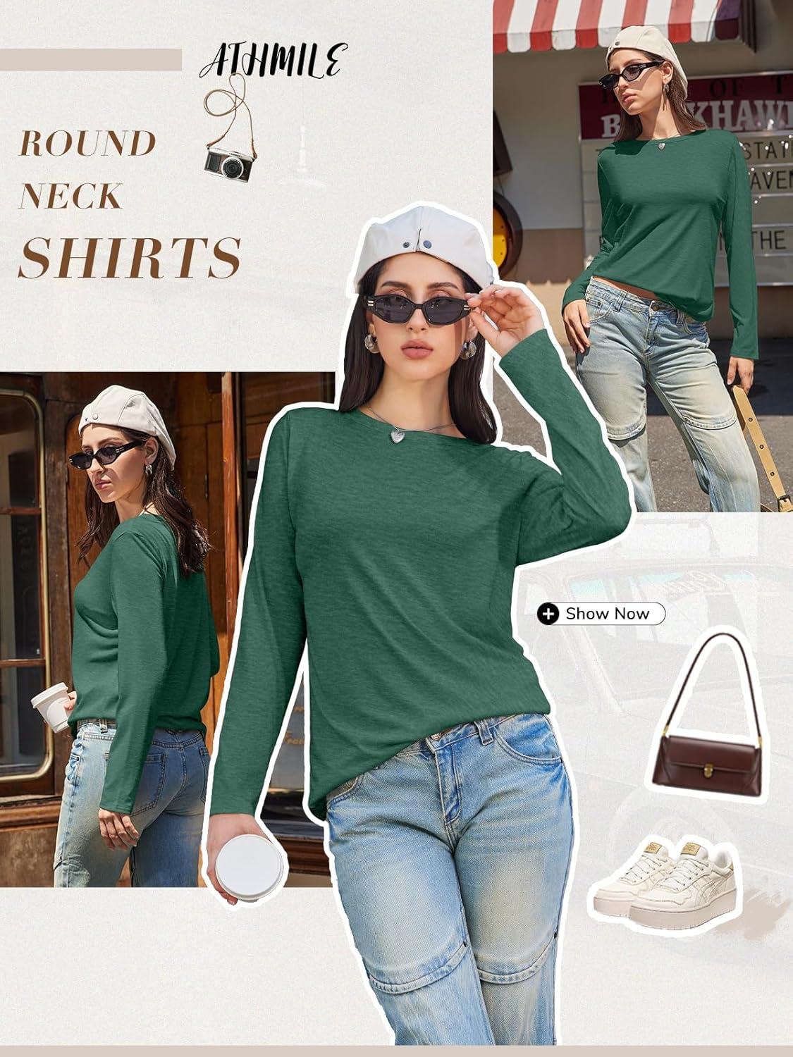 Get your hands on our newest ATHMILE Womens Long Sleeve Shirts Basic Tee Fall Trendy Spring Top Business Casual Beach Vacation Workout 2025 Fashion(Dark Green) and enjoy a limited-time discount offer.