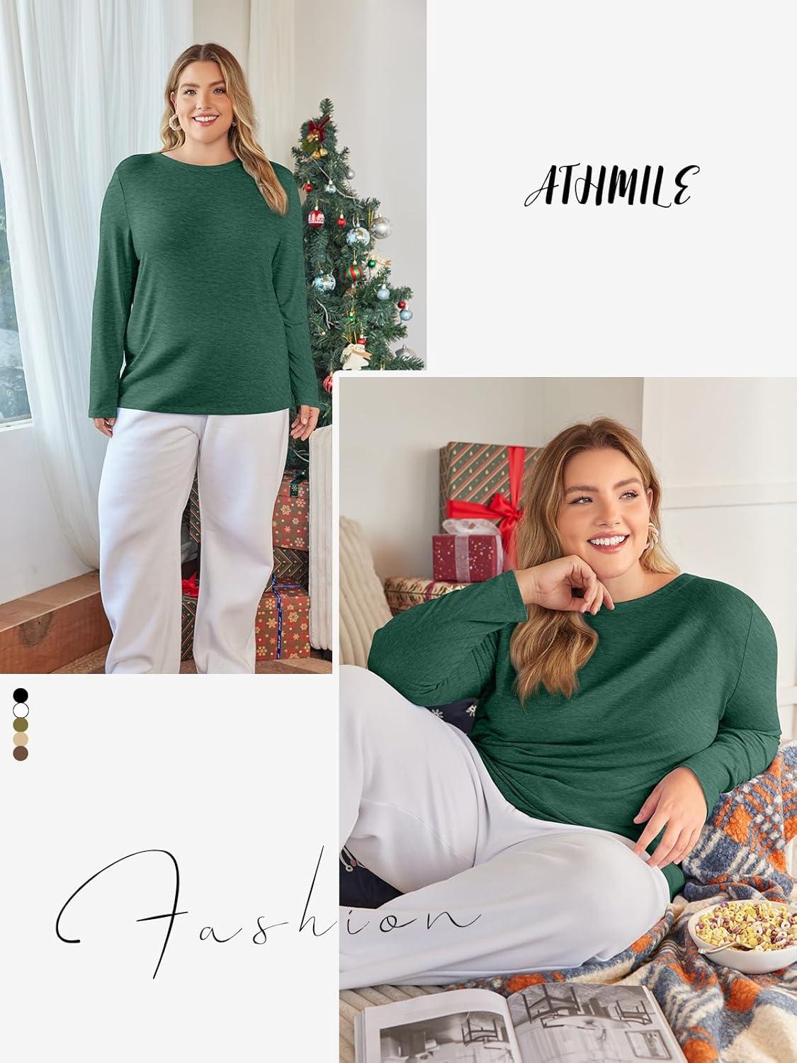 ATHMILE Womens Long Sleeve Shirts Basic Tee Fall Trendy Spring Top Business Casual Beach Vacation Workout 2025 Fashion(Fruit Green)