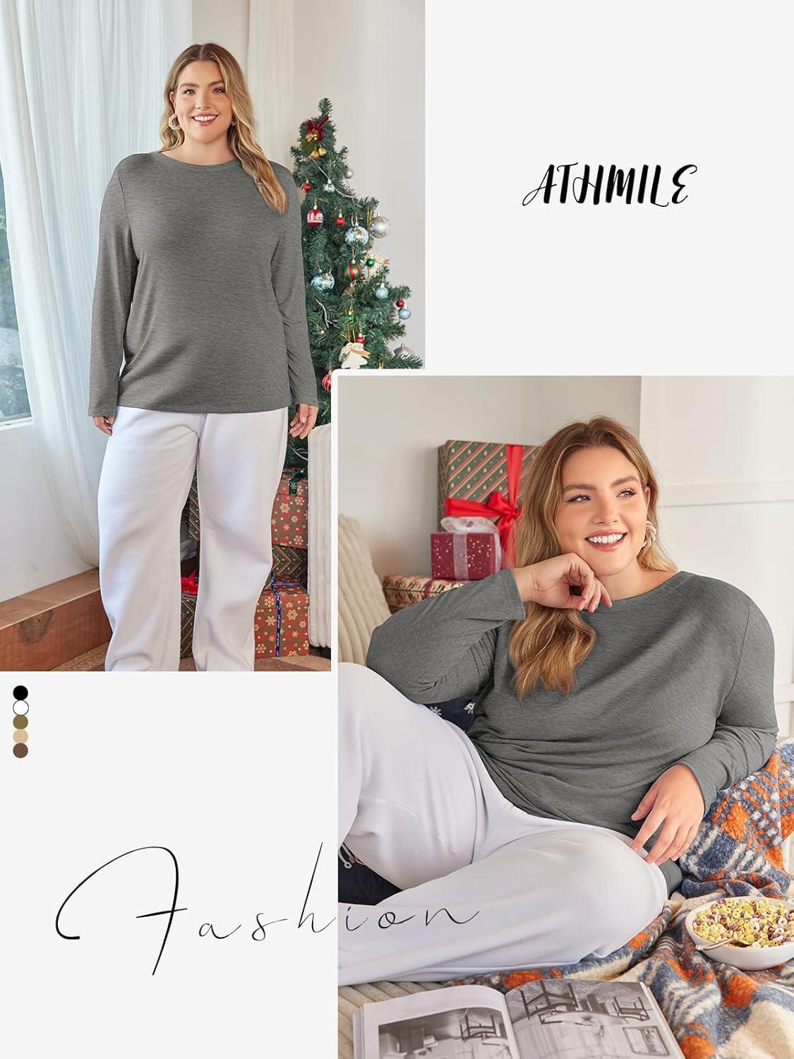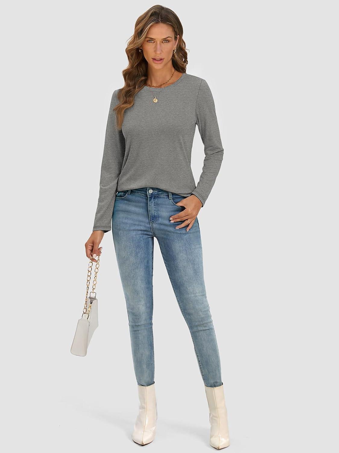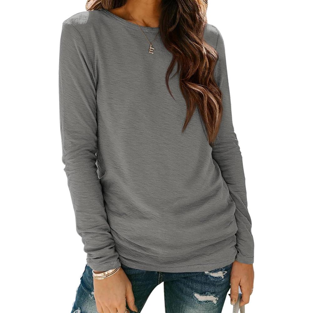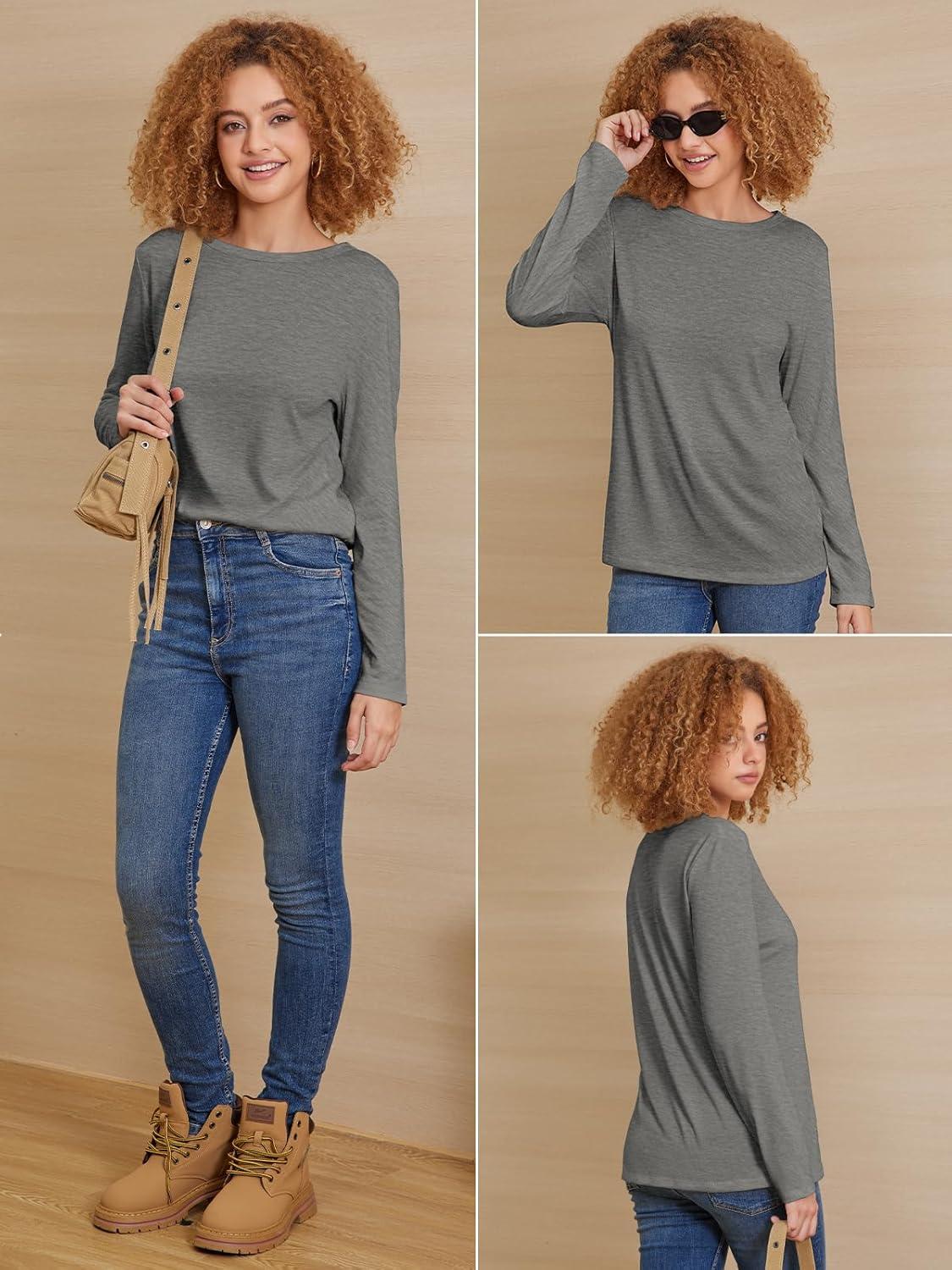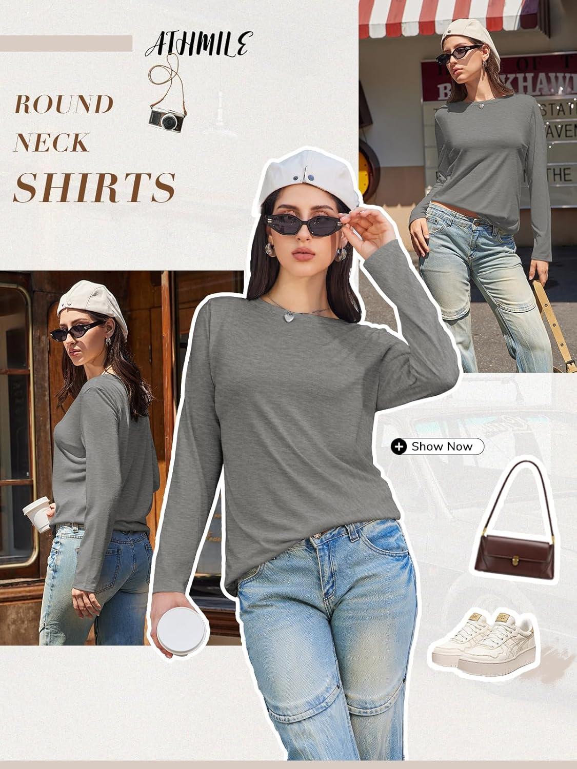ATHMILE Womens Long Sleeve Shirts Basic Tee Fall Trendy Spring Top Business Casual Beach Vacation Workout 2025 Fashion(Grey)