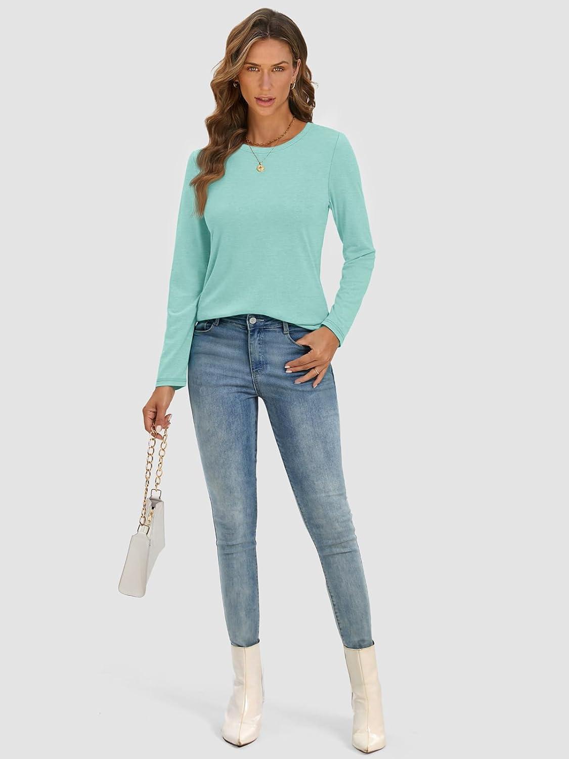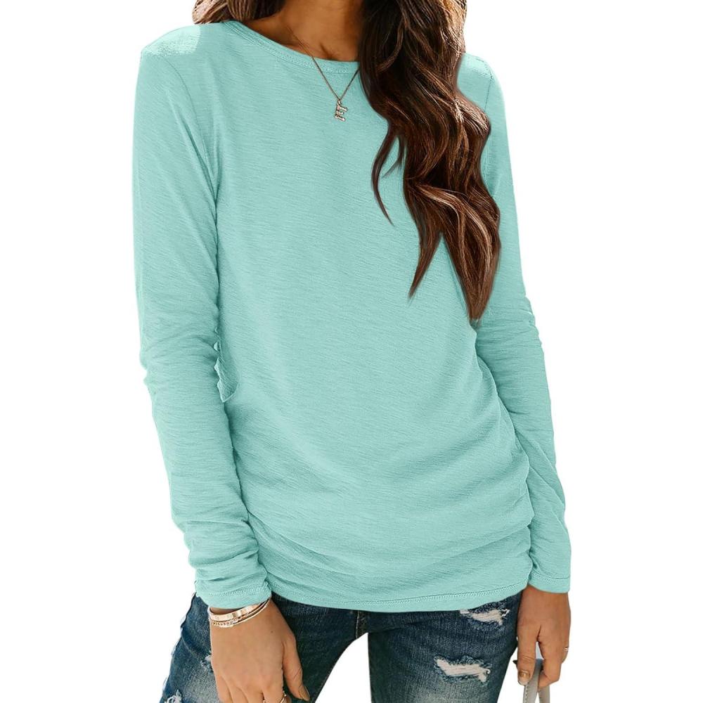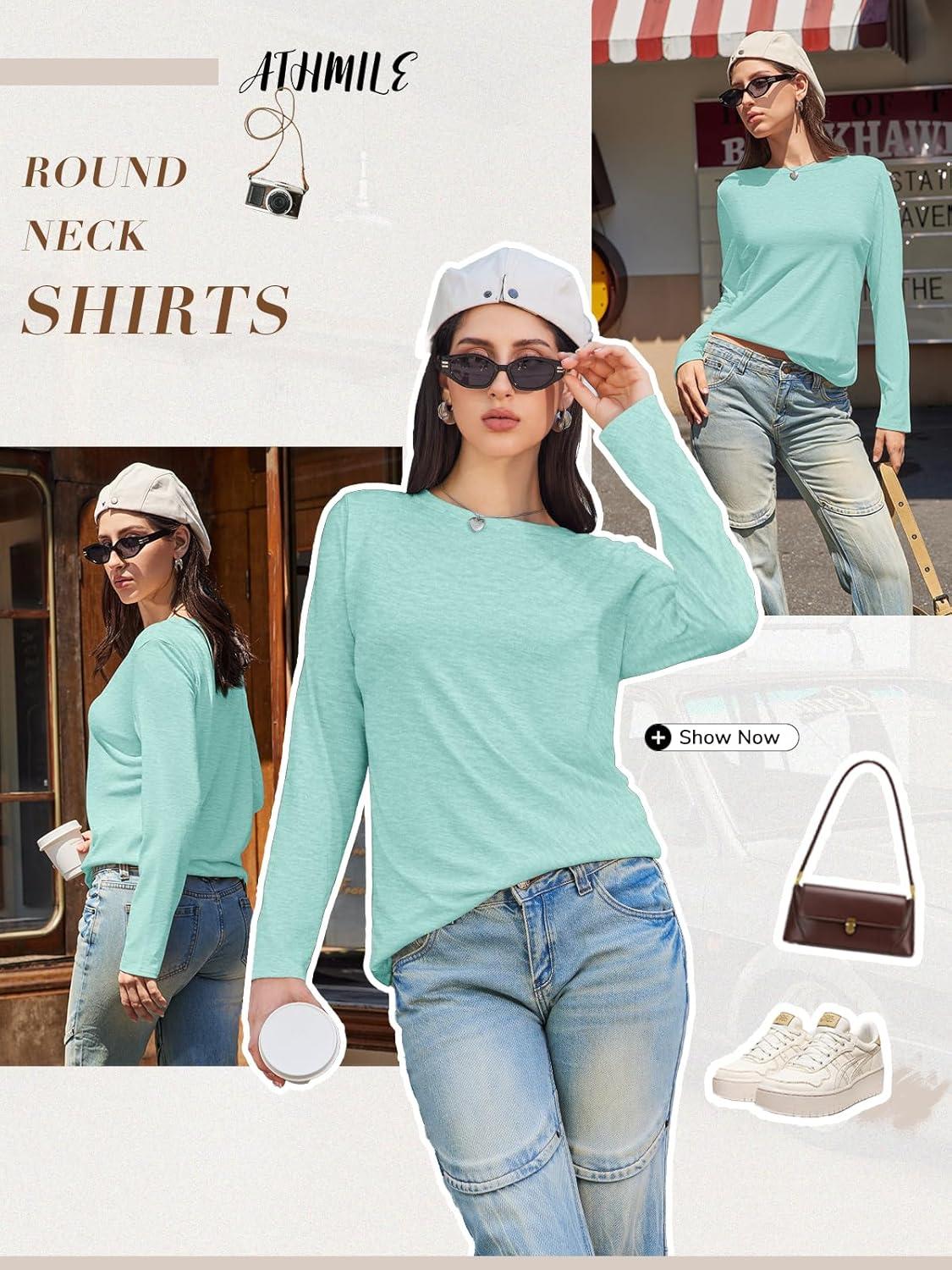 ATHMILE Womens Long Sleeve Shirts Basic Tee Fall Trendy Spring Top Business Casual Beach Vacation Workout 2025 Fashion(Ice Blue)
