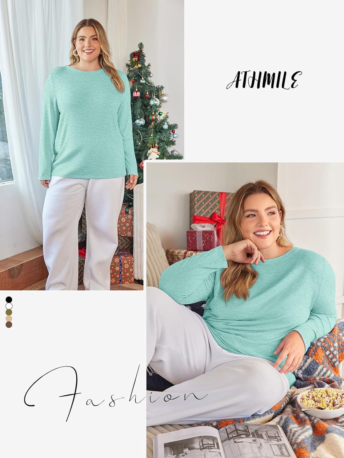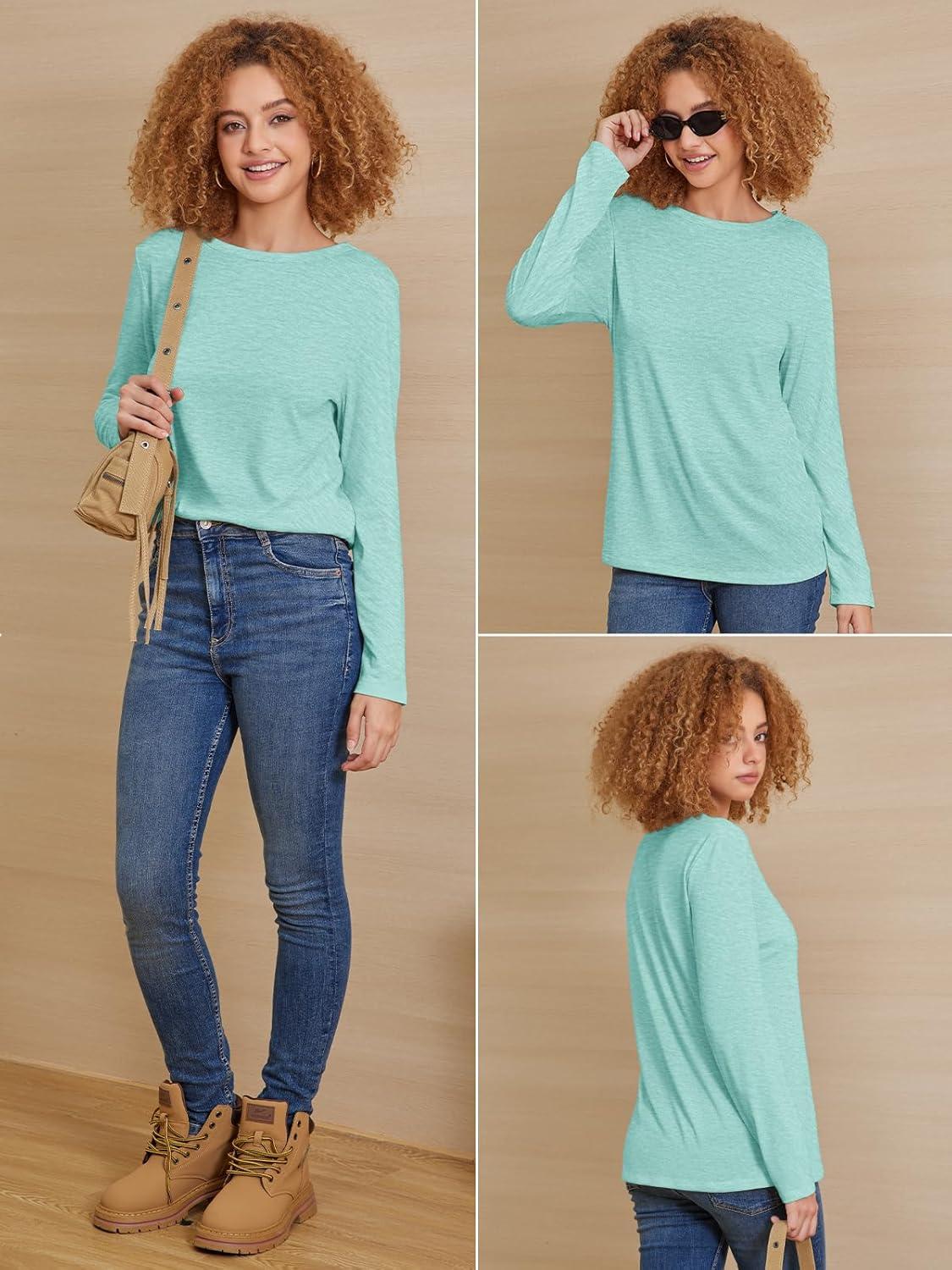 ATHMILE Womens Long Sleeve Shirts Basic Tee Fall Trendy Spring Top Business Casual Beach Vacation Workout 2025 Fashion(Lake Green)