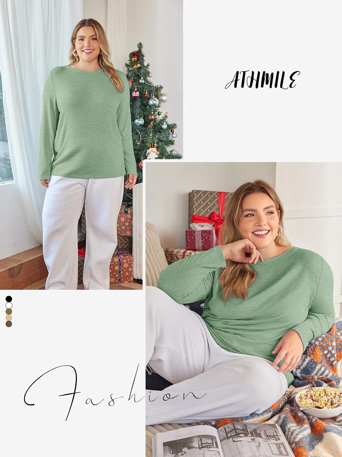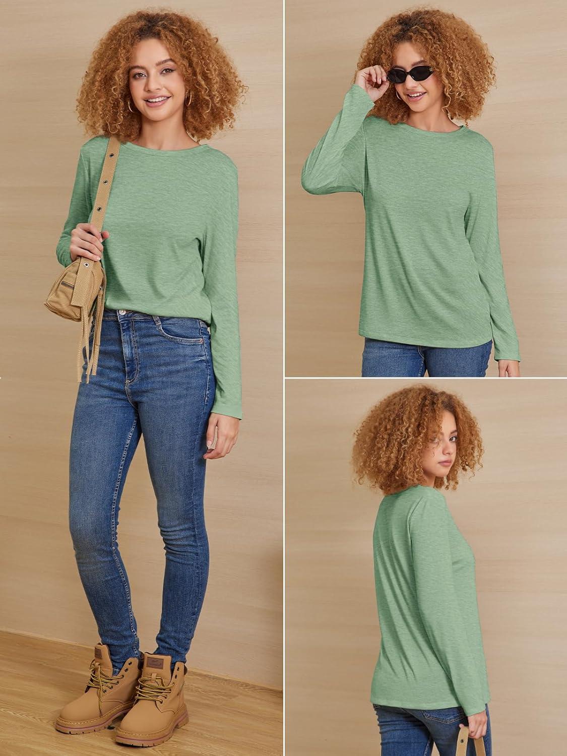 ATHMILE Womens Long Sleeve Shirts Basic Tee Fall Trendy Spring Top Business Casual Beach Vacation Workout 2025 Fashion(Light Green)