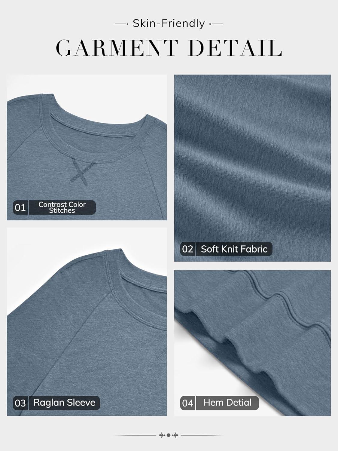ATHMILE Womens Long Sleeve Shirts Casual Loose Fit Tops Fall Fashion Outfits Dressy Basic Trendy Blouses Clothes(Grey Blue)