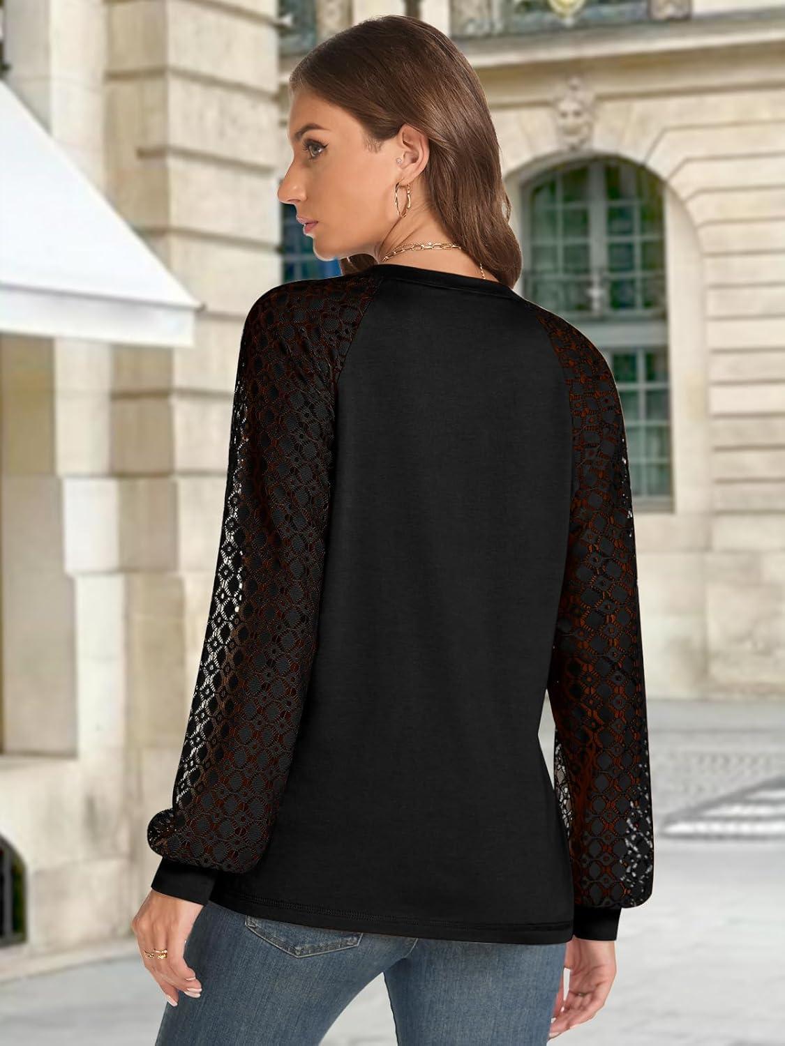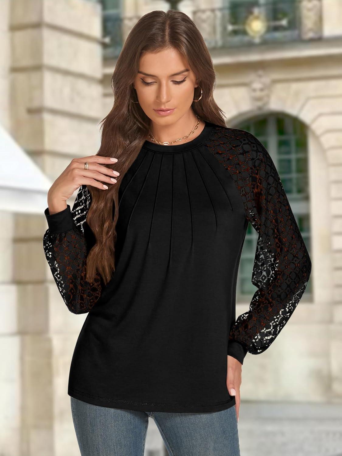 ATHMILE Womens Long Sleeve Shirts Lace Tops Business Casual Outfits Dressy Fall Fashion Blouses(Black)