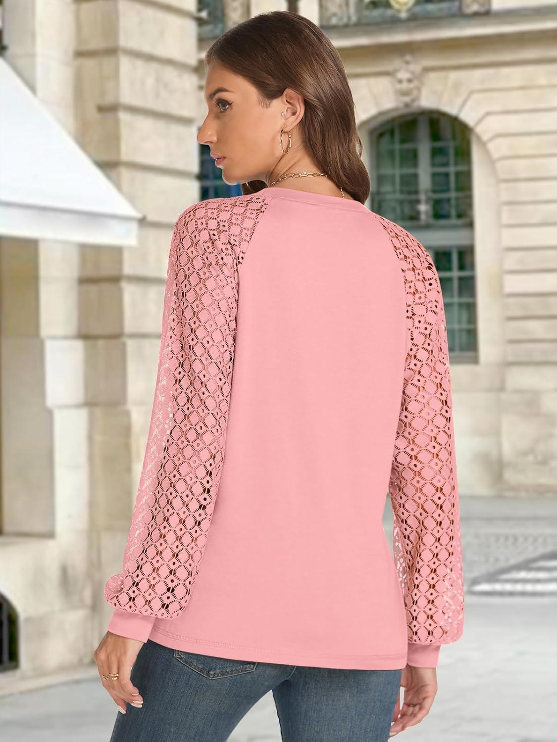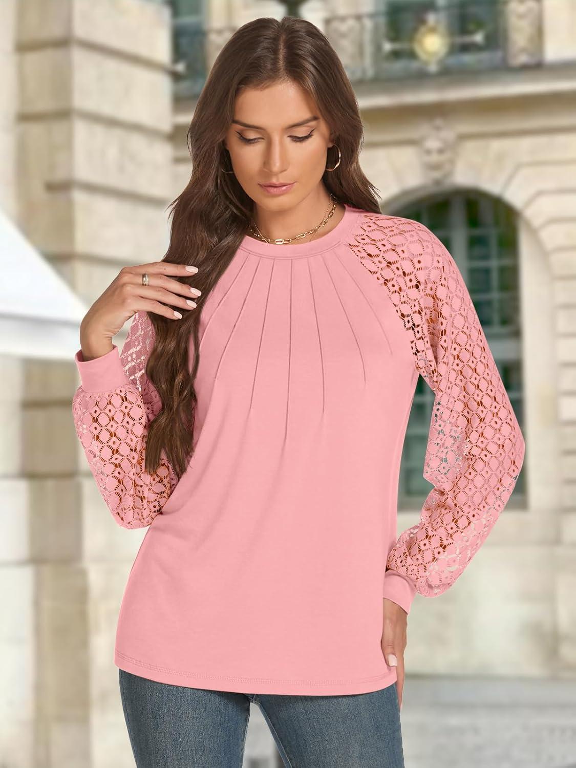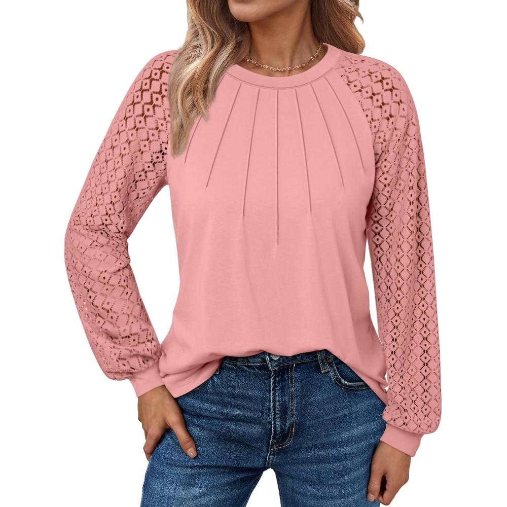 ATHMILE Womens Long Sleeve Shirts Lace Tops Business Casual Outfits Dressy Fall Fashion Blouses(Coral)