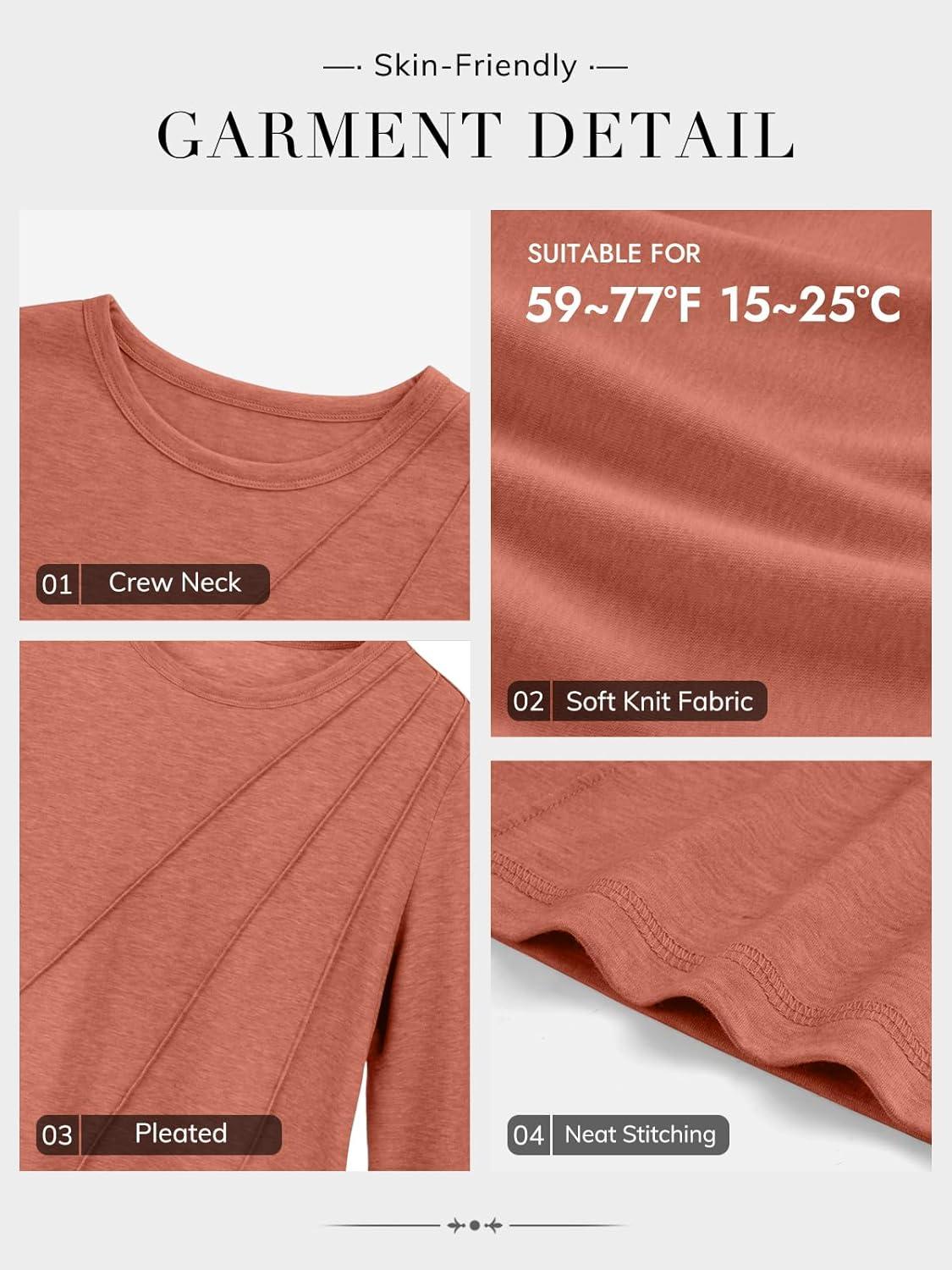 ATHMILE Womens Long Sleeve Shirts Pleated Crew Neck Casual Fall Fashion Tops Loose Fit Lightweight Girls Outfits Clothes(Rust)