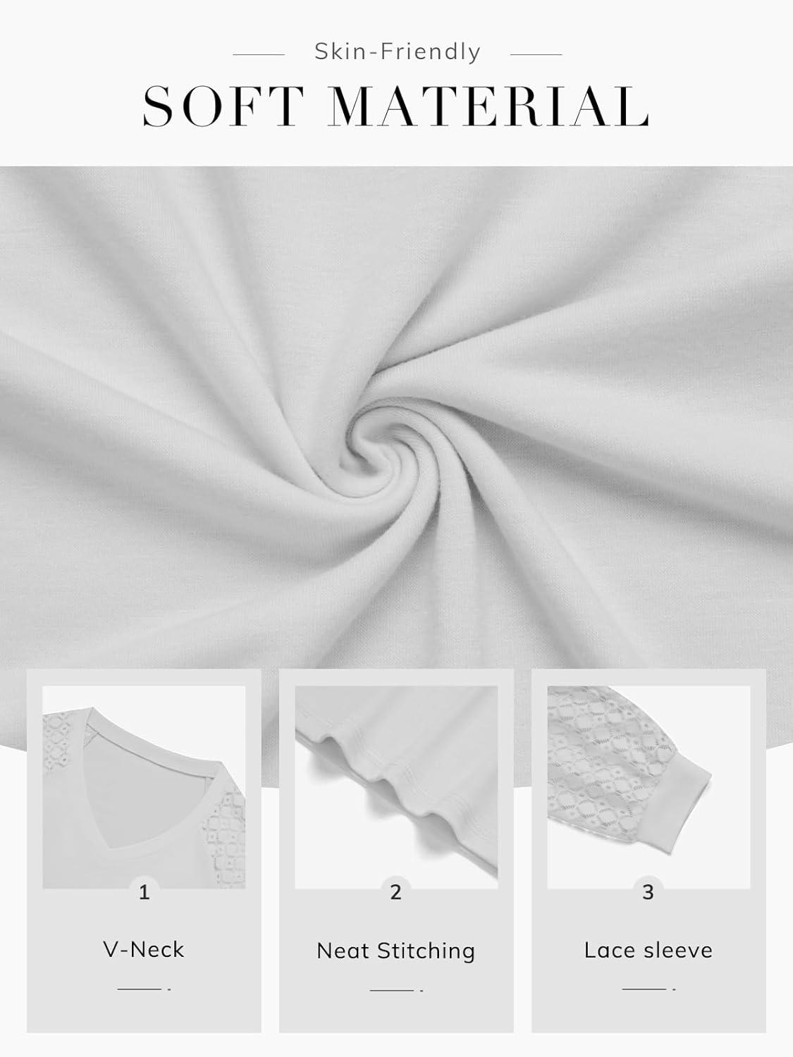 ATHMILE Womens Long Sleeve Shirts V-Neck Lace Tops Business Casual Blouses Tee 2025 Trendy Fall Fashion Outfits Clothes(White)
